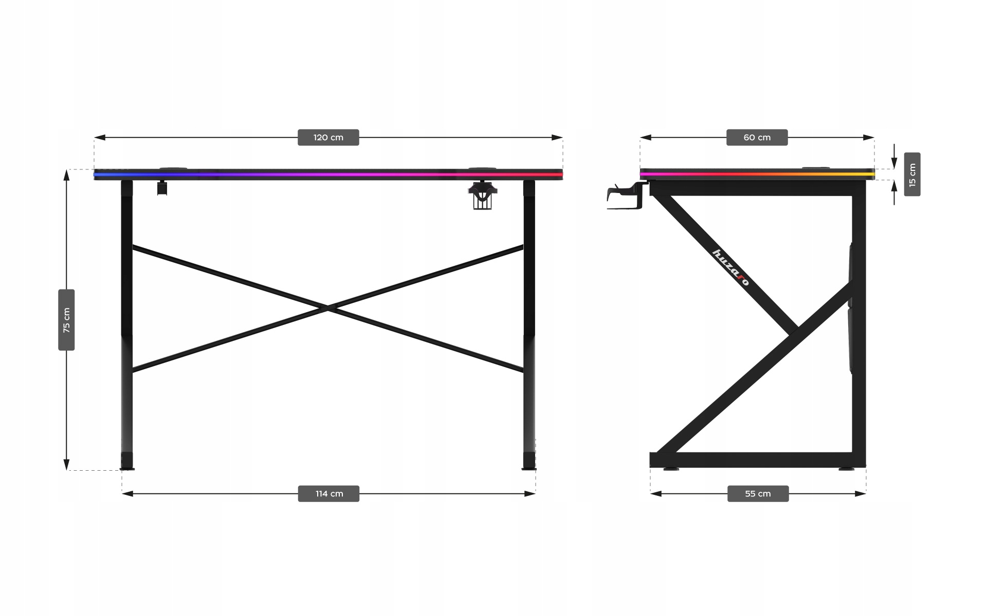 Huzaro biurko gamingowe komputerowe LED dla gracza HERO 1.7 RGB Black