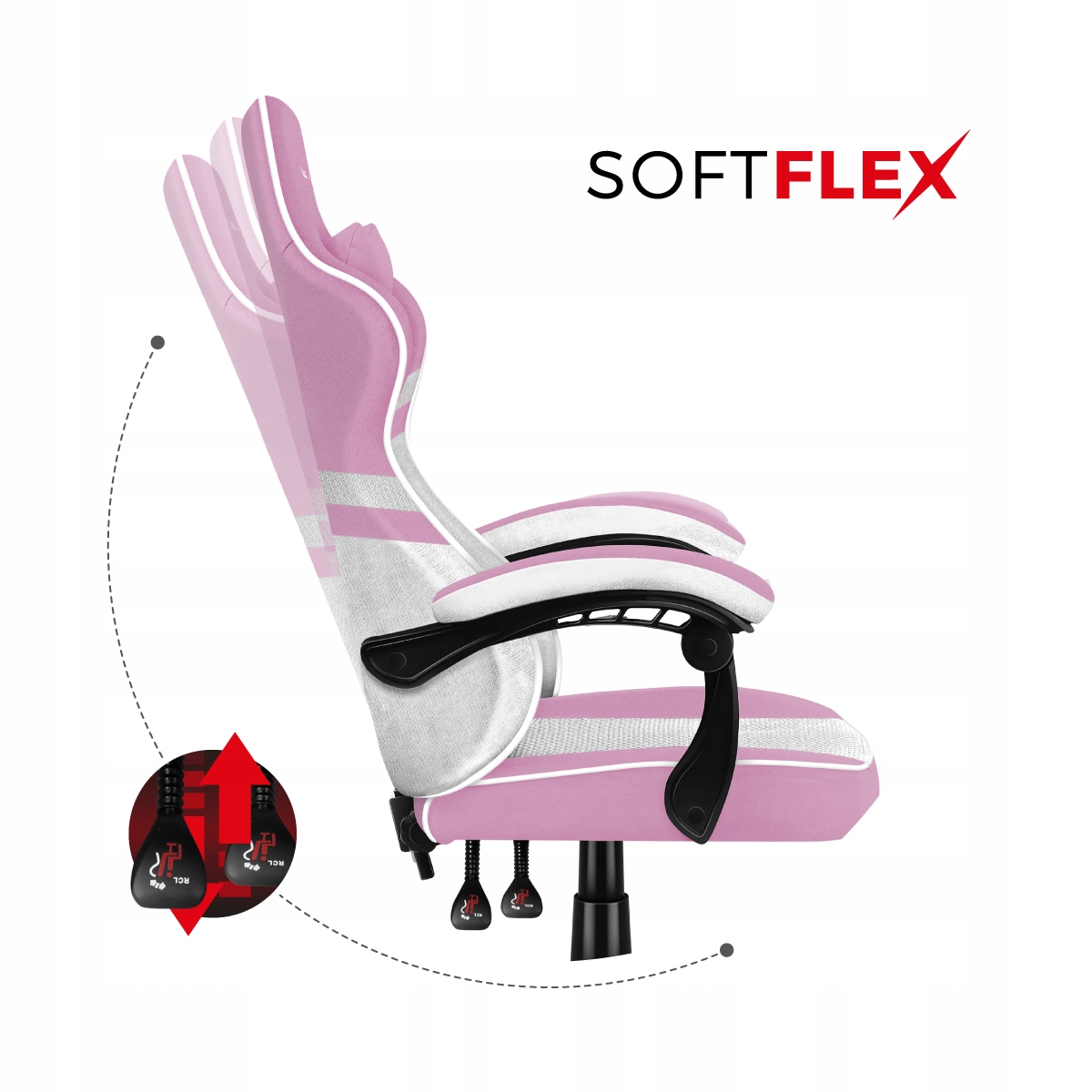 - Funkcja Softlex daje możliwość delikatnego bujania się podczas siedzenia, dzięki czemu granie lub praca staną się jeszcze przyjemniejsze.