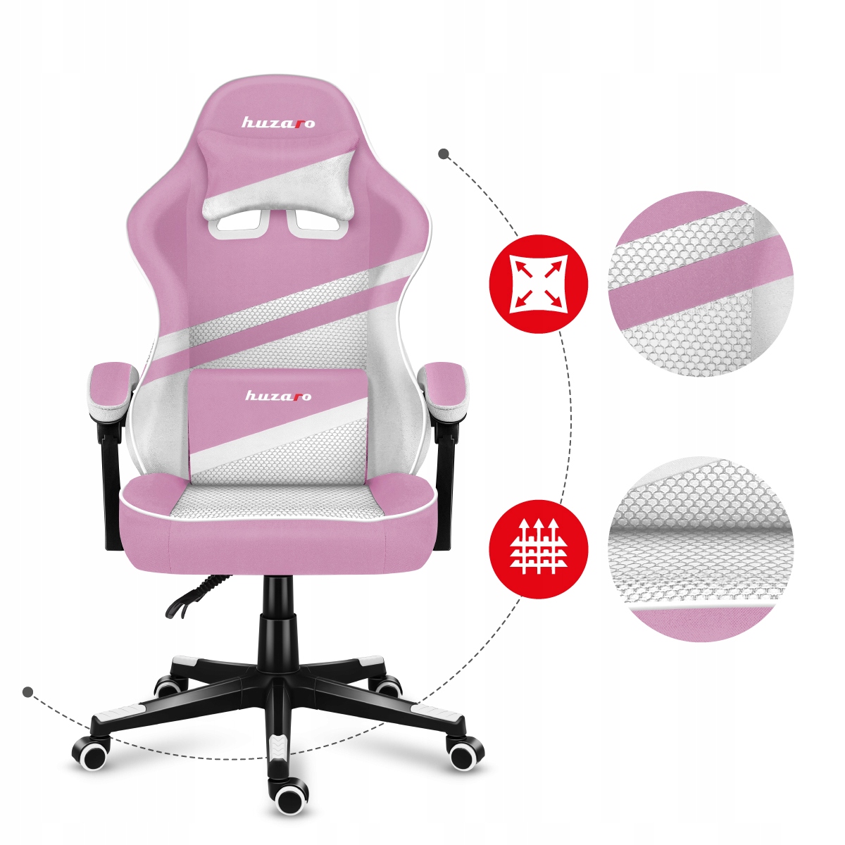 Huzaro FOTEL Gamingowy OBROTOWY GRACZA materiałowy Mesh FORCE 4.4 Pink