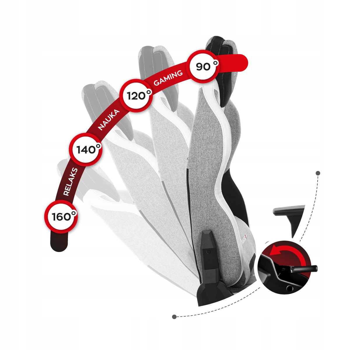 - Funkcja SideRest umożliwia odchylenia oparcia o 160 stopni