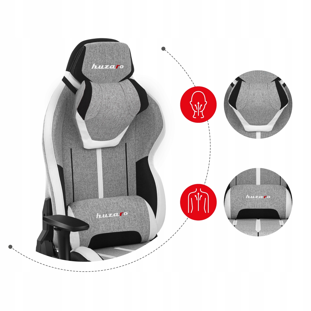 - Regulowana, zdejmowana poduszka pod kark odciąża mięśnie szyi podczas siedzenia.