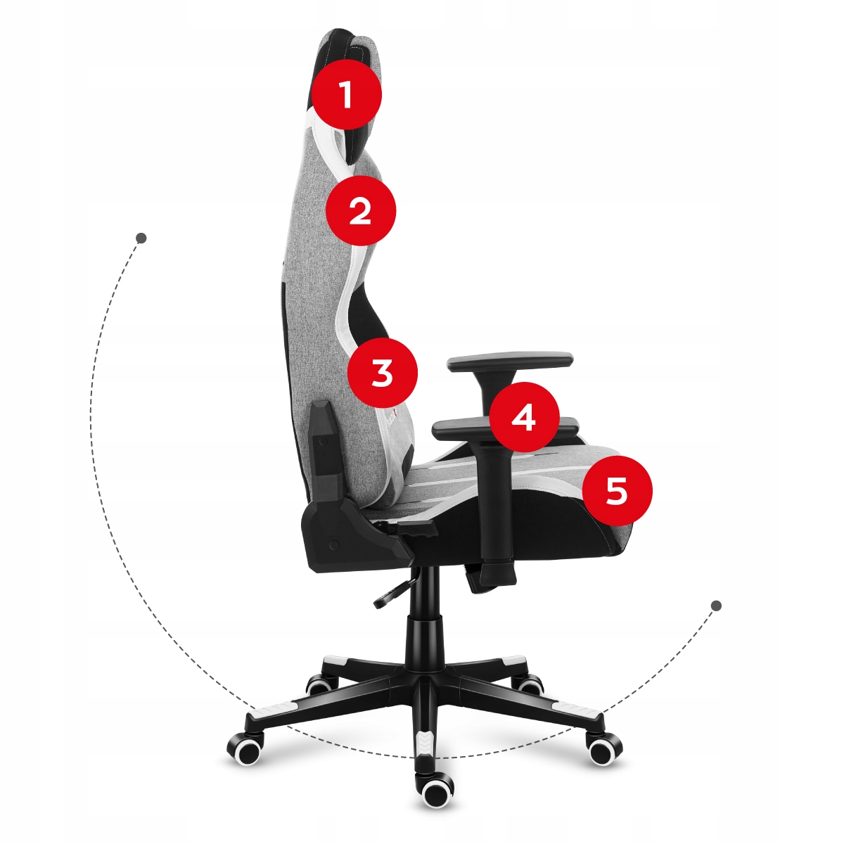 - Ergonomiczna konstrukcja dopasowuje się do naturalnej krzywizny kręgosłupa, dzięki czemu długie sesje gamingowe stają się przyjemne.