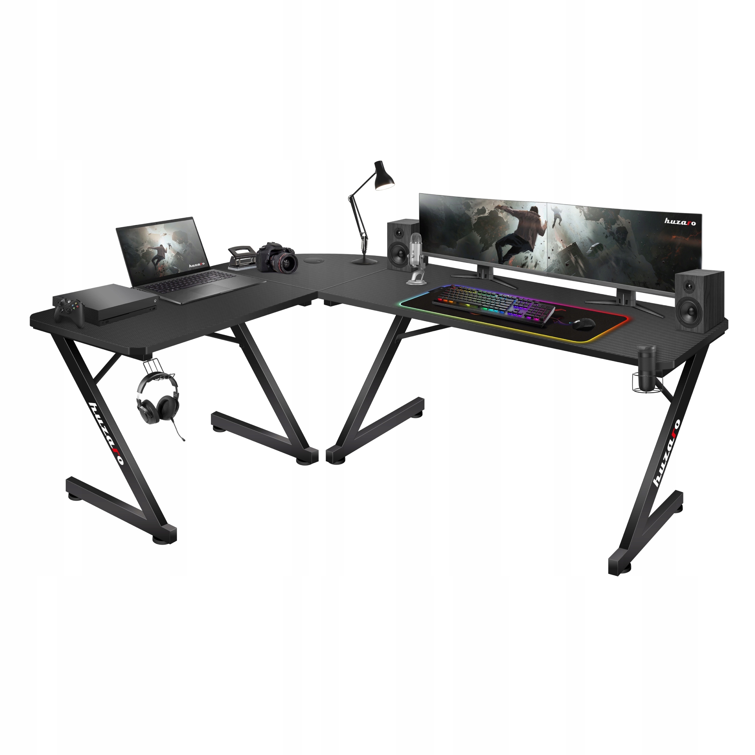 Huzaro narożne biurko gamingowe komputerowe z uchwytami HERO 7.0 Black