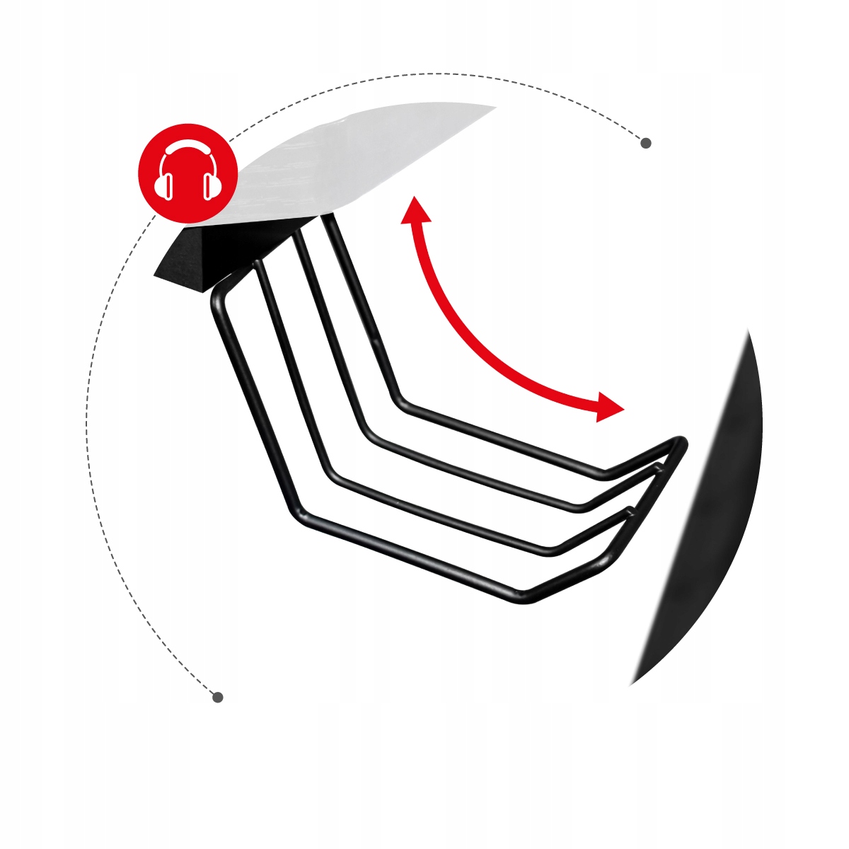 Wygodny, podręczny uchwyt na słuchawki. Podczas gdy nie używasz słuchawek, te wiszą bezpiecznie, nie zajmując przestrzeni na blacie. Uchwyt szybko i wygodnie można schować pod biurko.