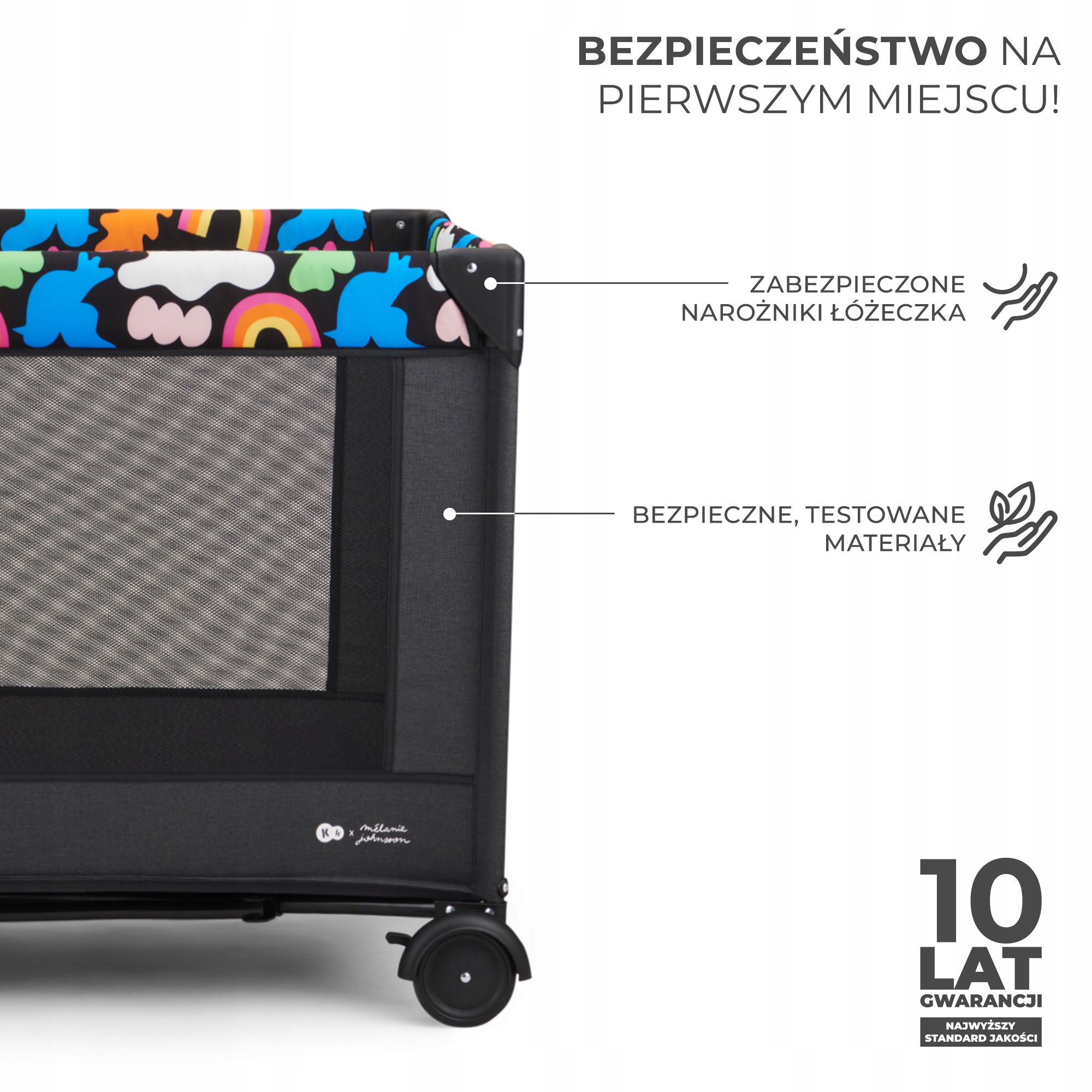 Bezpieczeństwo i stabilność – Kinderkraft JOY 2 łóżeczko turystyczne 2 w 1 składane w 5 sekund Happy Shapes