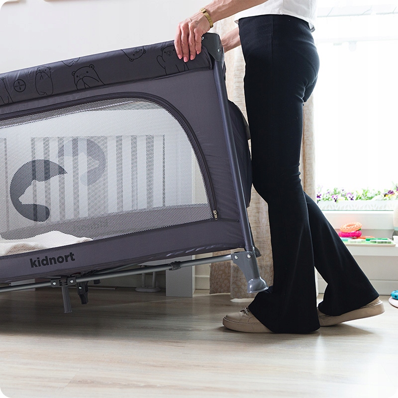 Łóżeczko jest niezwykle lekkie, co ułatwia jego przenoszenie i ustawianie w dowolnym miejscu. Kompaktowa konstrukcja sprawia, że jest idealne zarówno do codziennego użytku, jak i podróży.