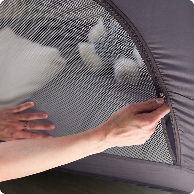 Duża siateczka wentylacyjna zapewnia doskonałą cyrkulację powietrza, co przyczynia się do komfortowego snu dziecka. Pozwala również rodzicom na łatwe obserwowanie maluszka.