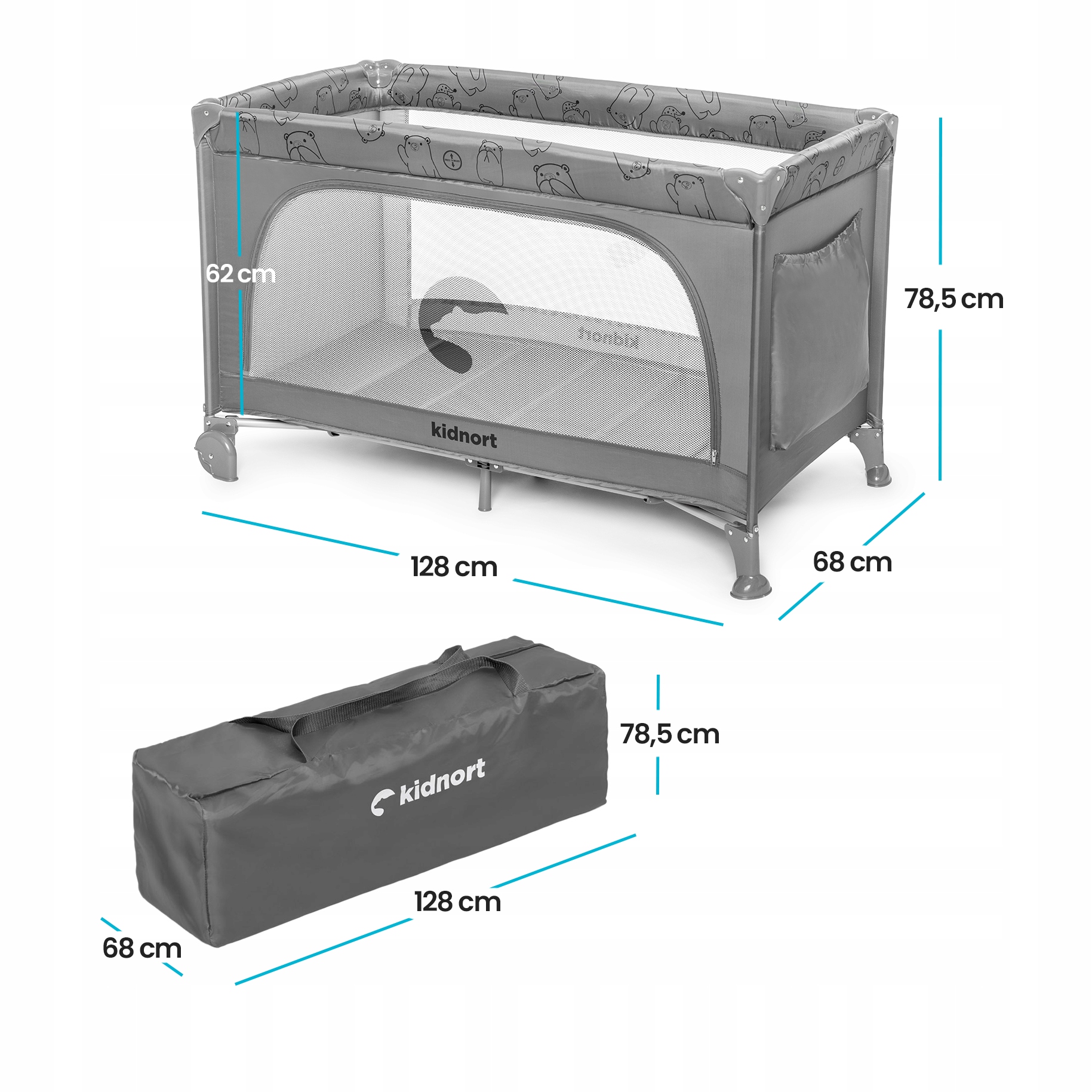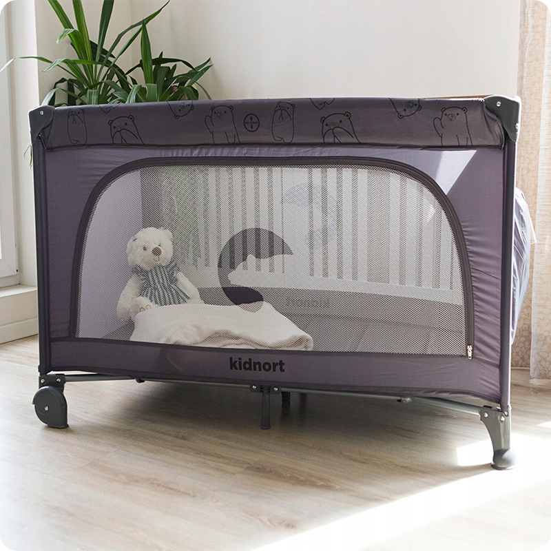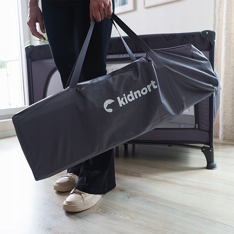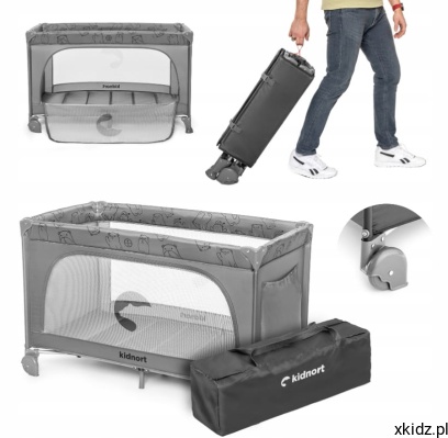 KIDNORT Łóżeczko turystyczne składane kojec+torba materac GROTTA light grey