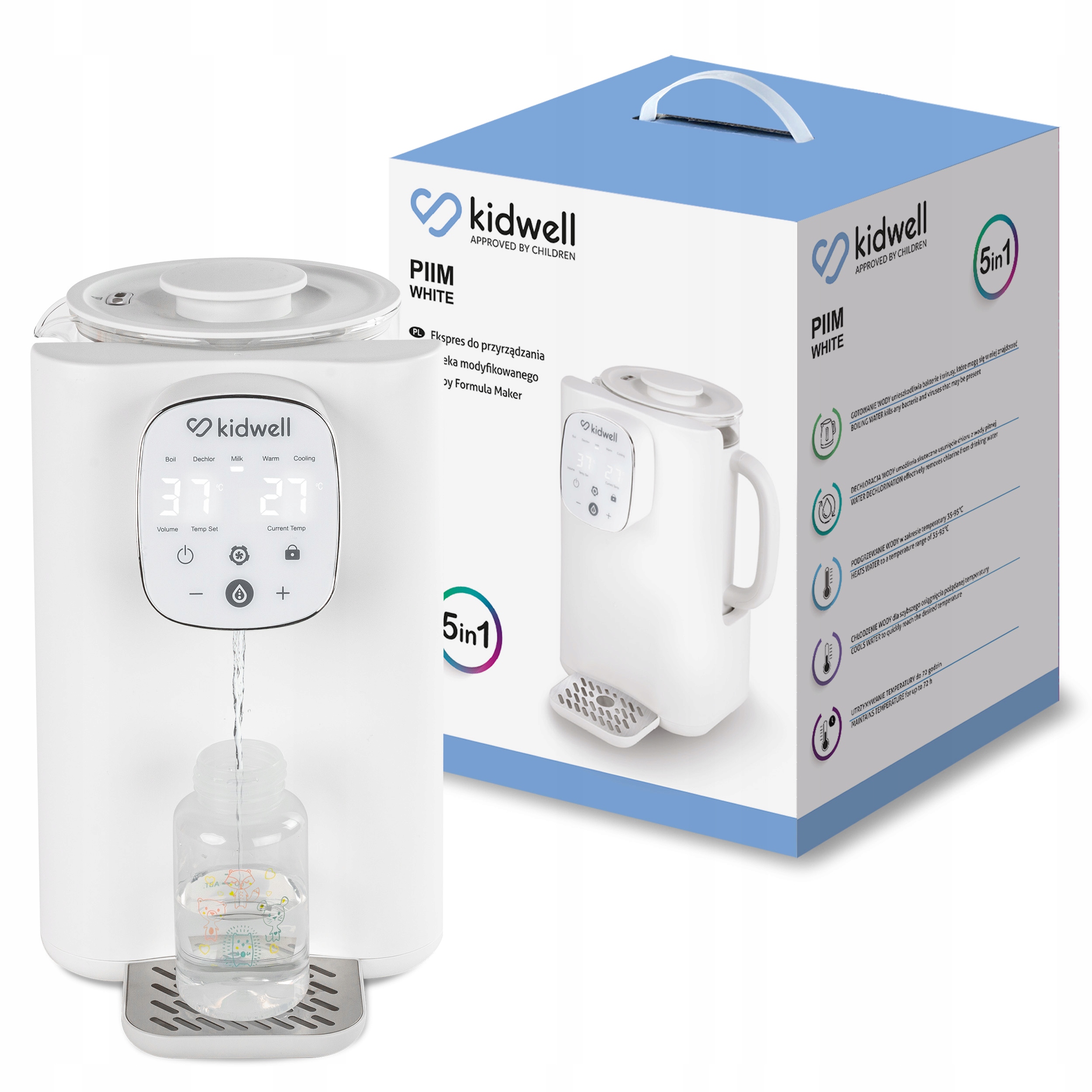 Ekspres do przygotowywania mleka modyfikowanego Kidwell PIIM to wszechstronne urządzenie. Jego podstawowe funkcje to: