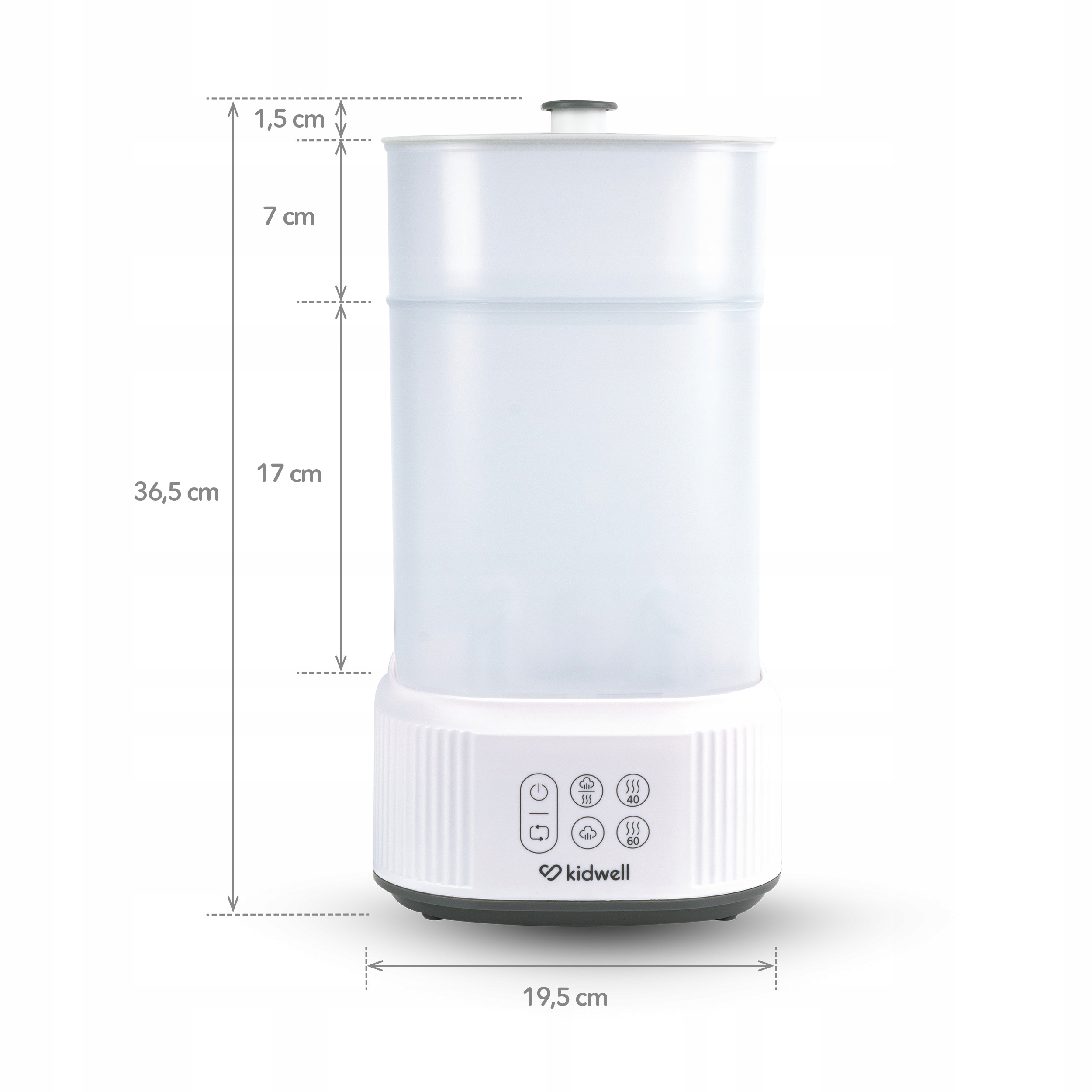 Kidwell Puro jest urządzeniem multifunkcyjnym - może być używany na różne sposoby - do procesu sterylizacji i suszenia, samej sterylizacji lub samego suszenia. Może również służyć jako miejsce do przechowywania butelek i akcesoriów.