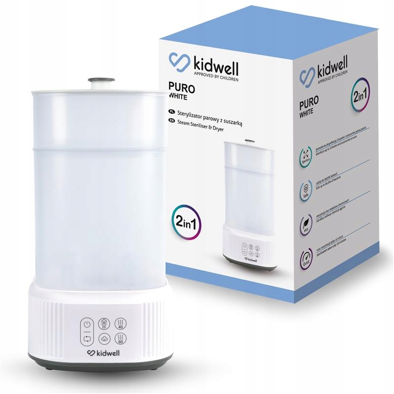 Kidwell Puro to urządzenie 2 w 1, które łączy w sobie sterylizator parowy oraz suszarkę. To niezastąpione urządzenie w każdym domu.