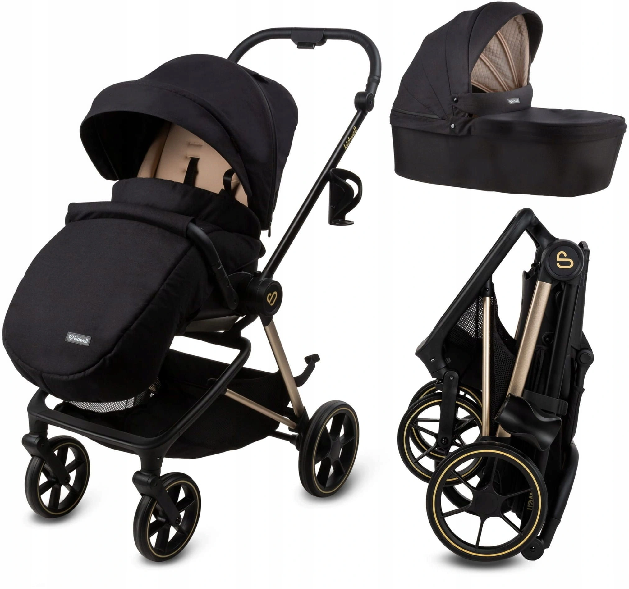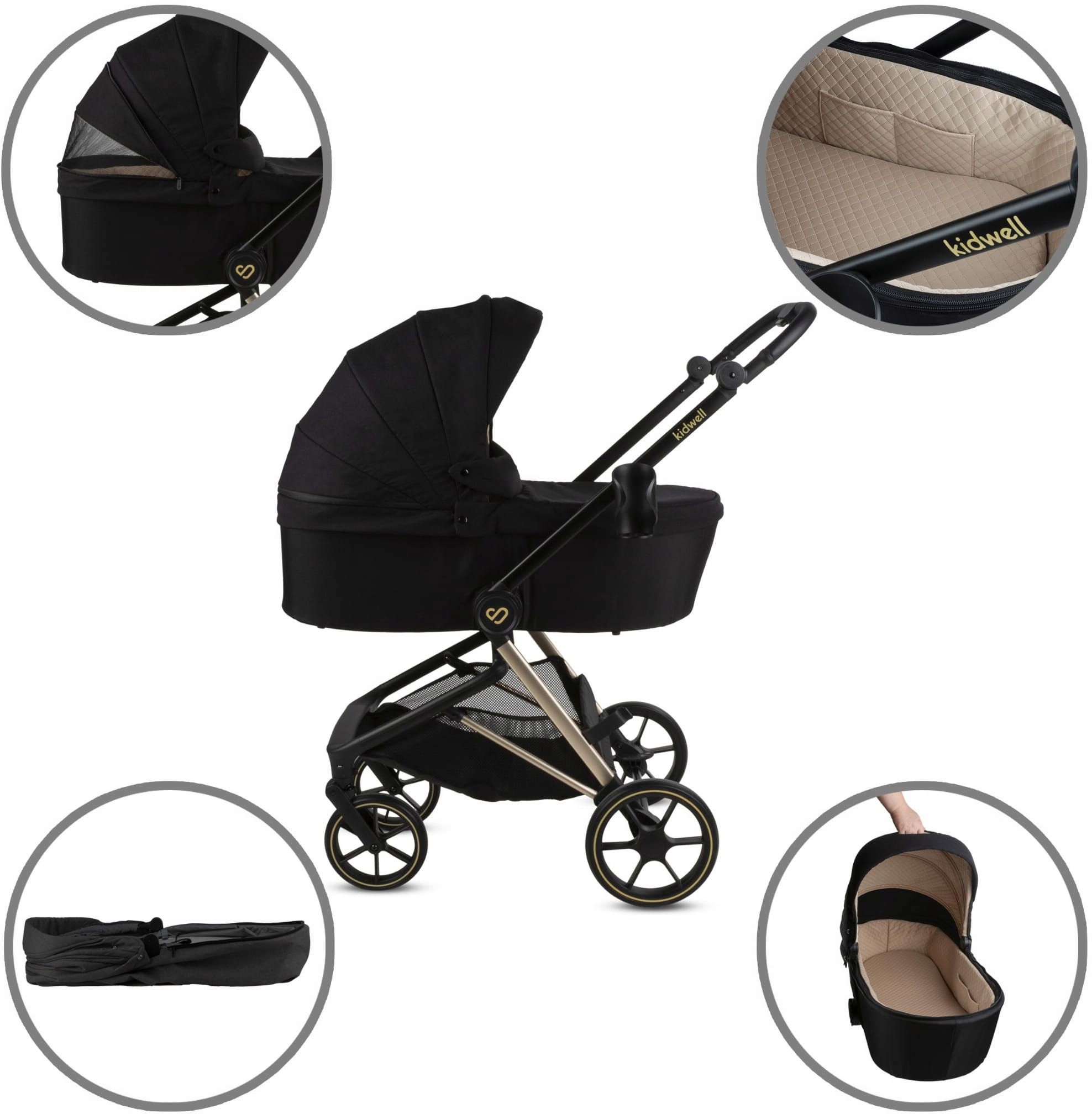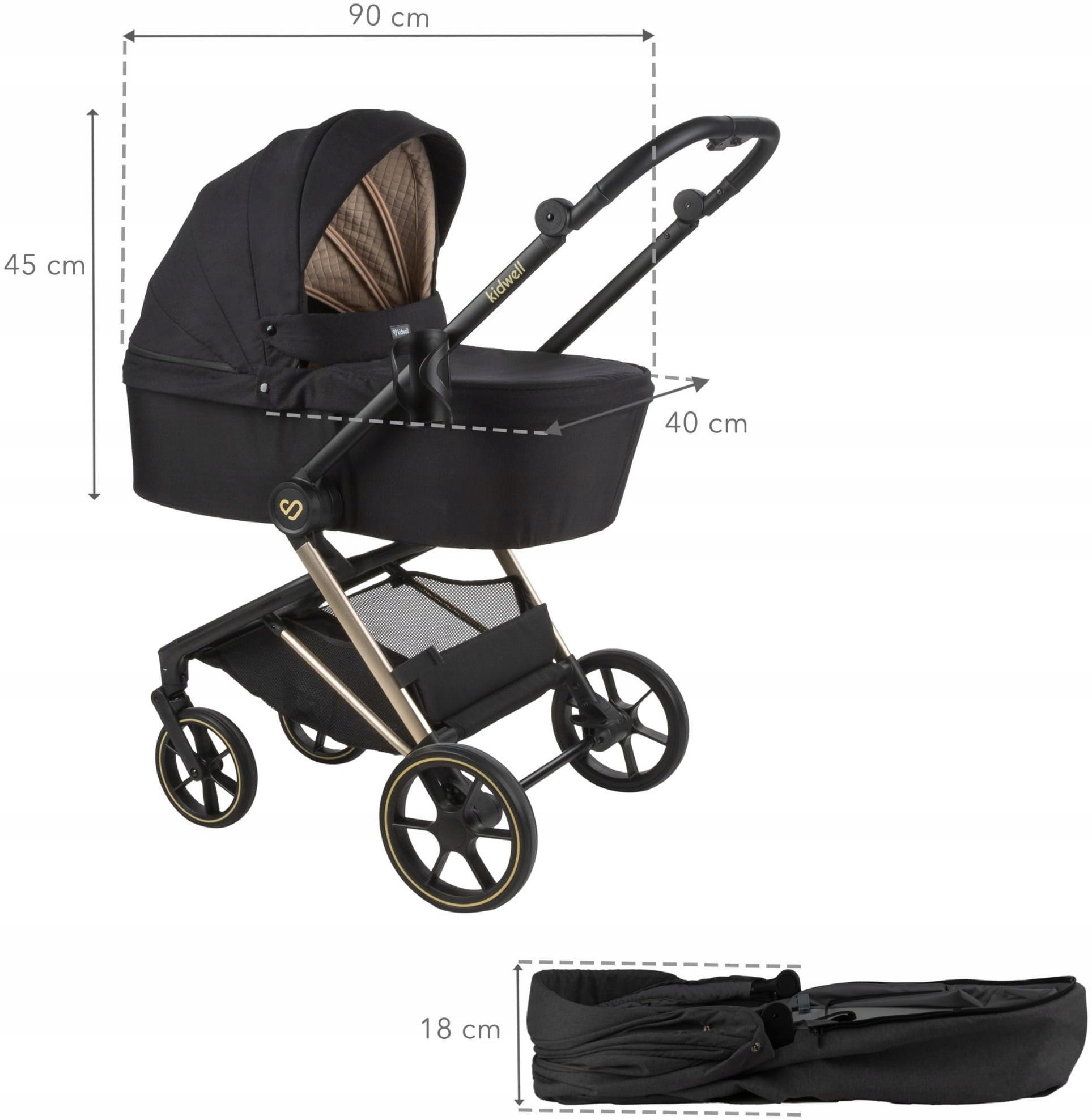 Kidwell VELMONT wózek 2W1 SPACERÓWKA GONDOLA WIELOFUNKCYJNY do 22 kg Black