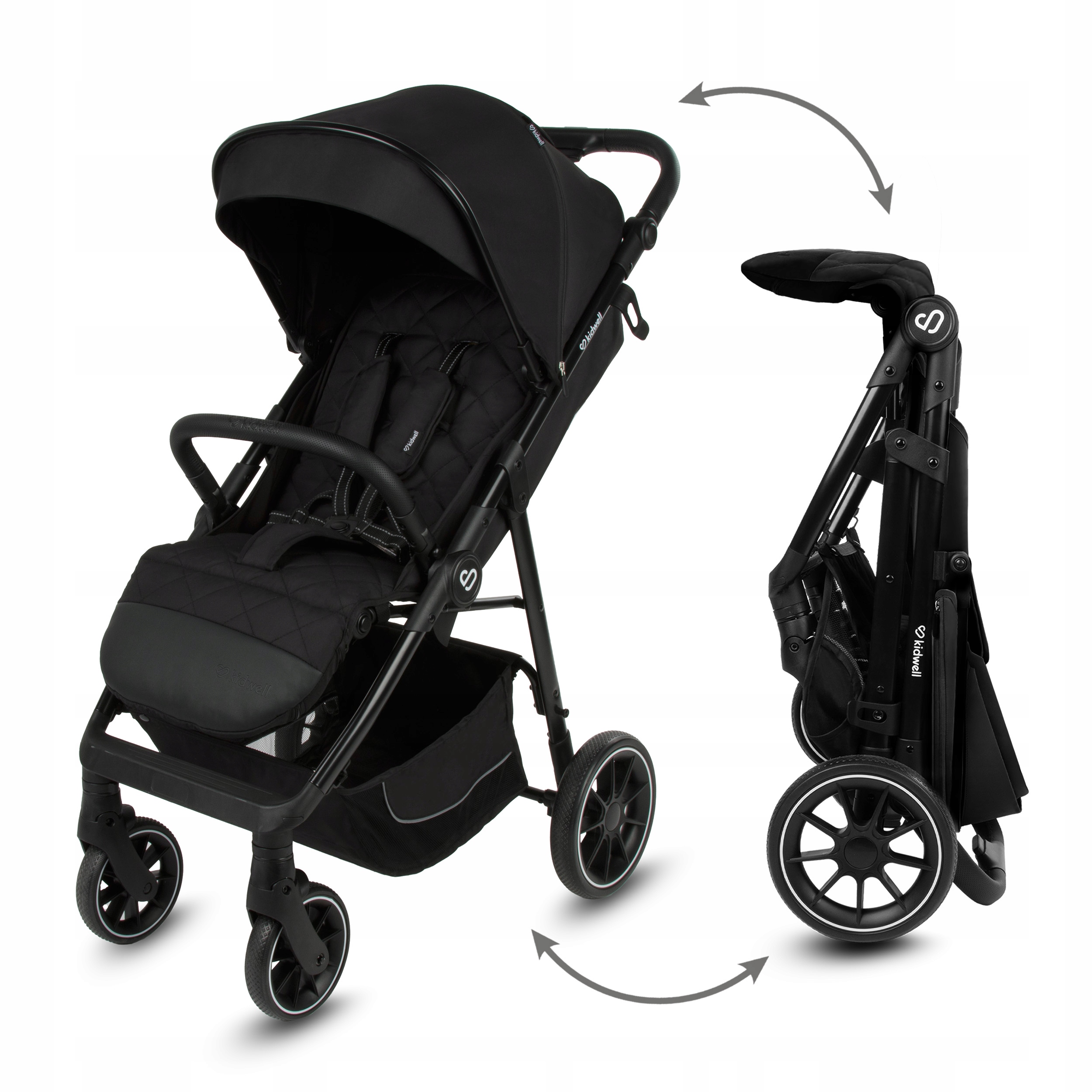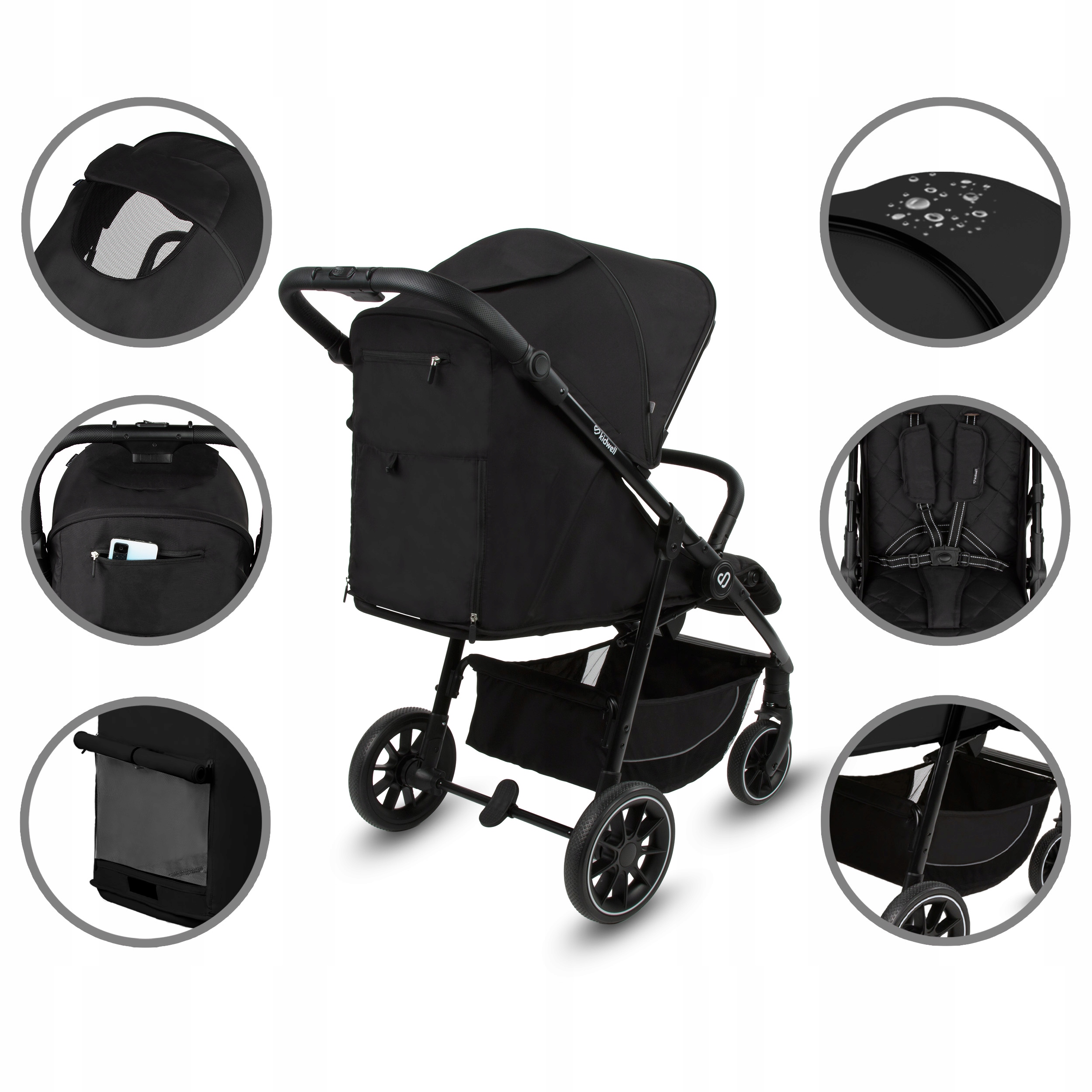 Kidwell Wózek spacerowy ENZO + akcesoria duże koła budka XXL do 22kg Black