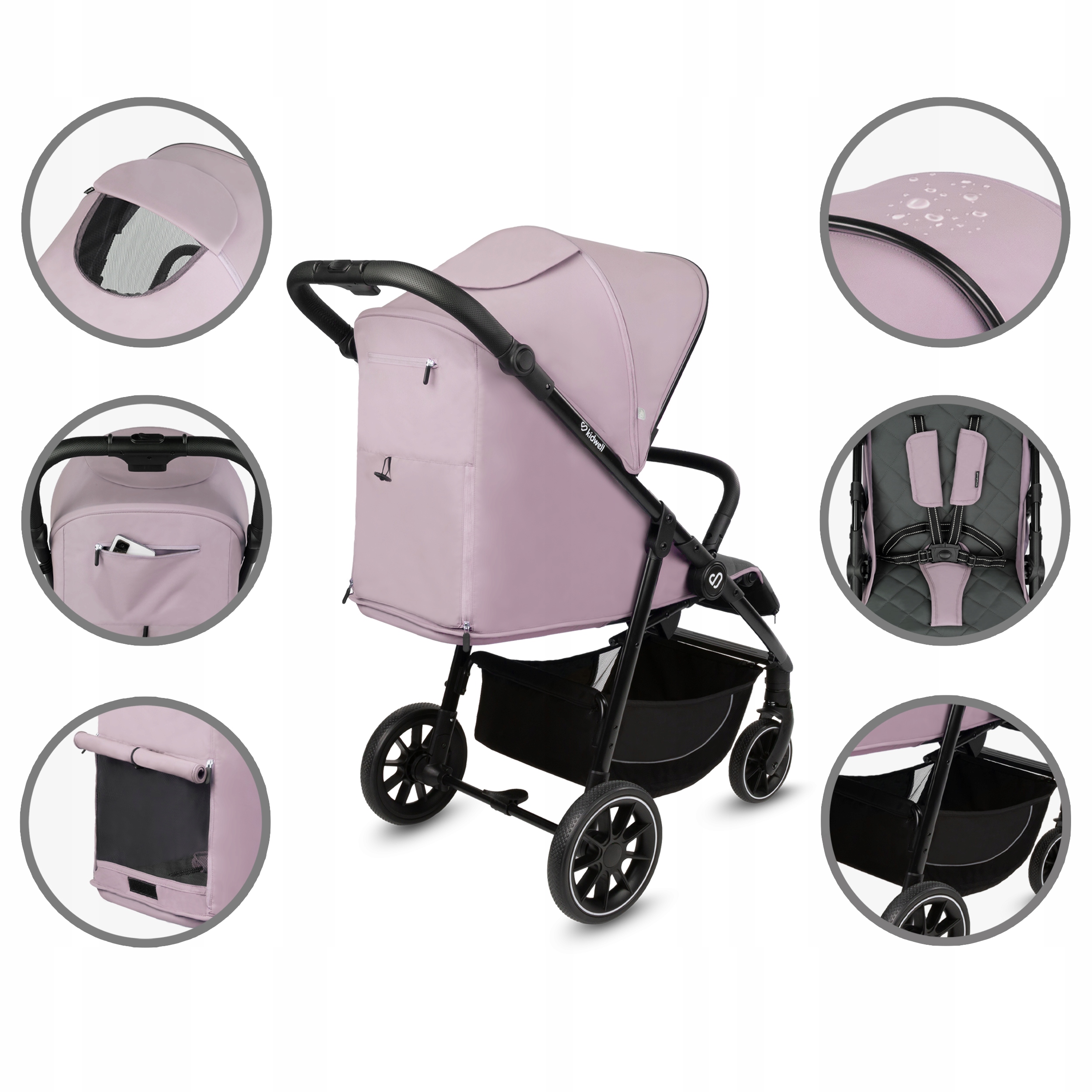 Kidwell Wózek spacerowy ENZO + akcesoria duże koła budka XXL do 22kg Pink