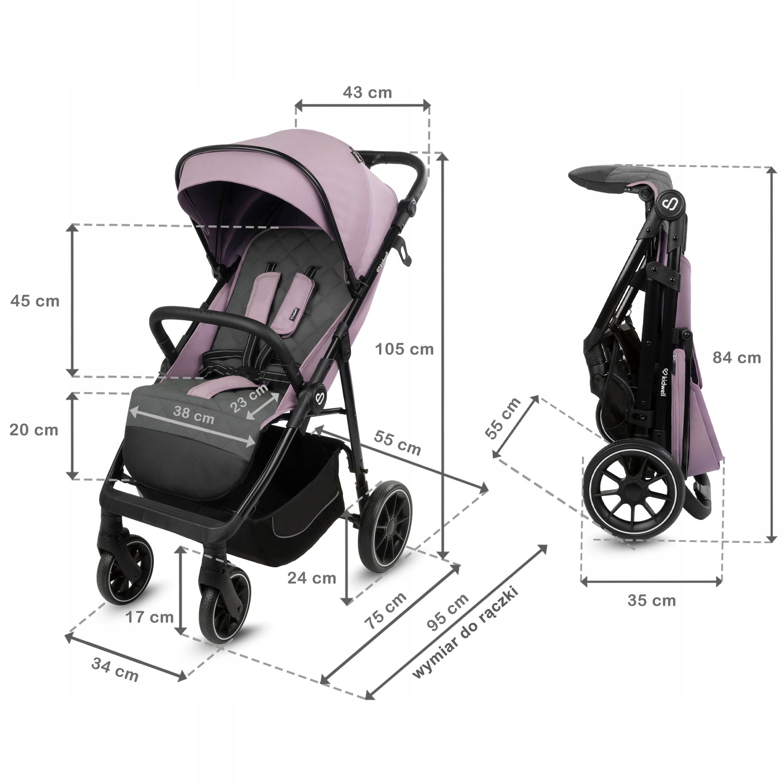 - Wymiary wózka po złożeniu: 35 x 55 x 84 cm