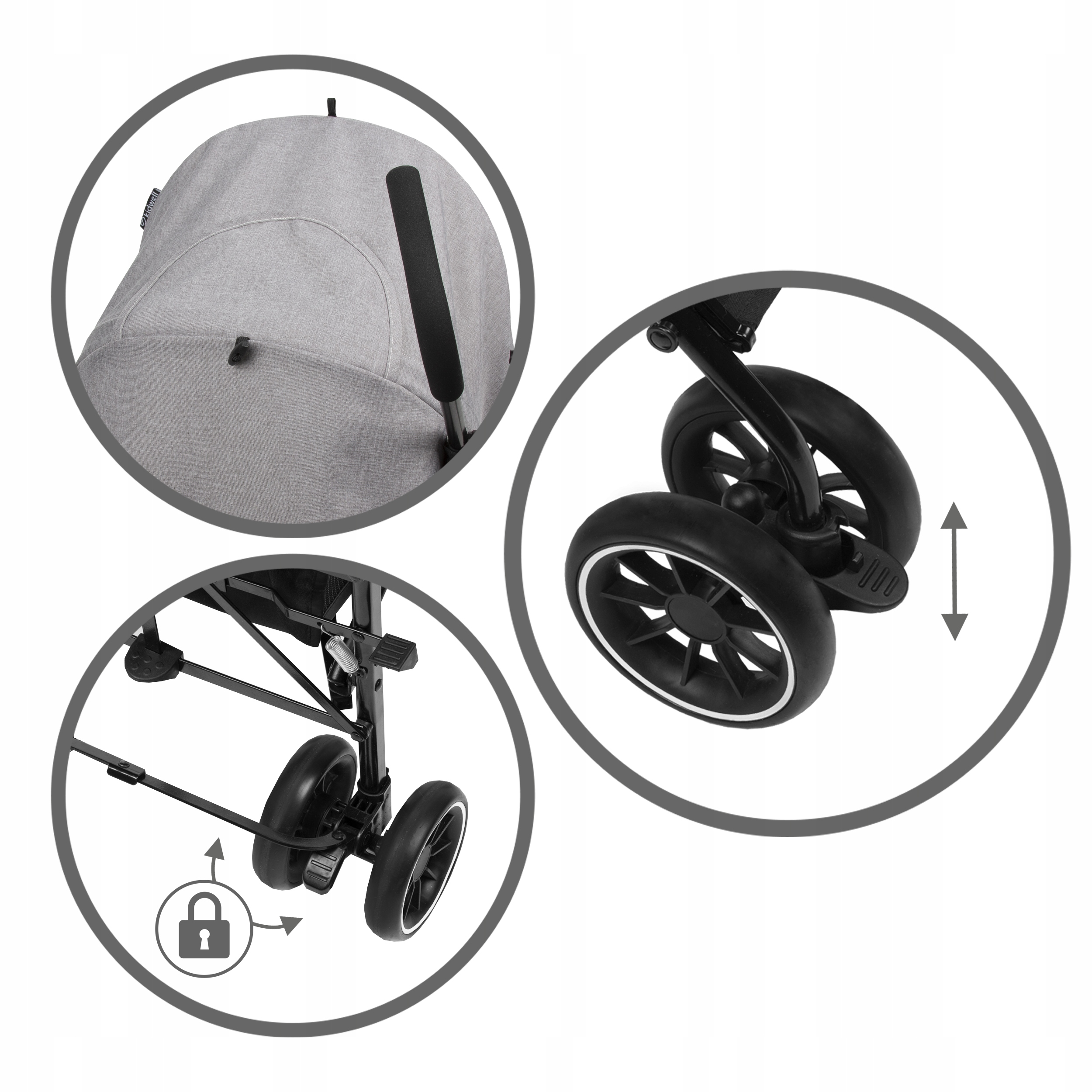 - Kolor: Rama czarna, rączki czarne, tkanina szaro-grafitowa