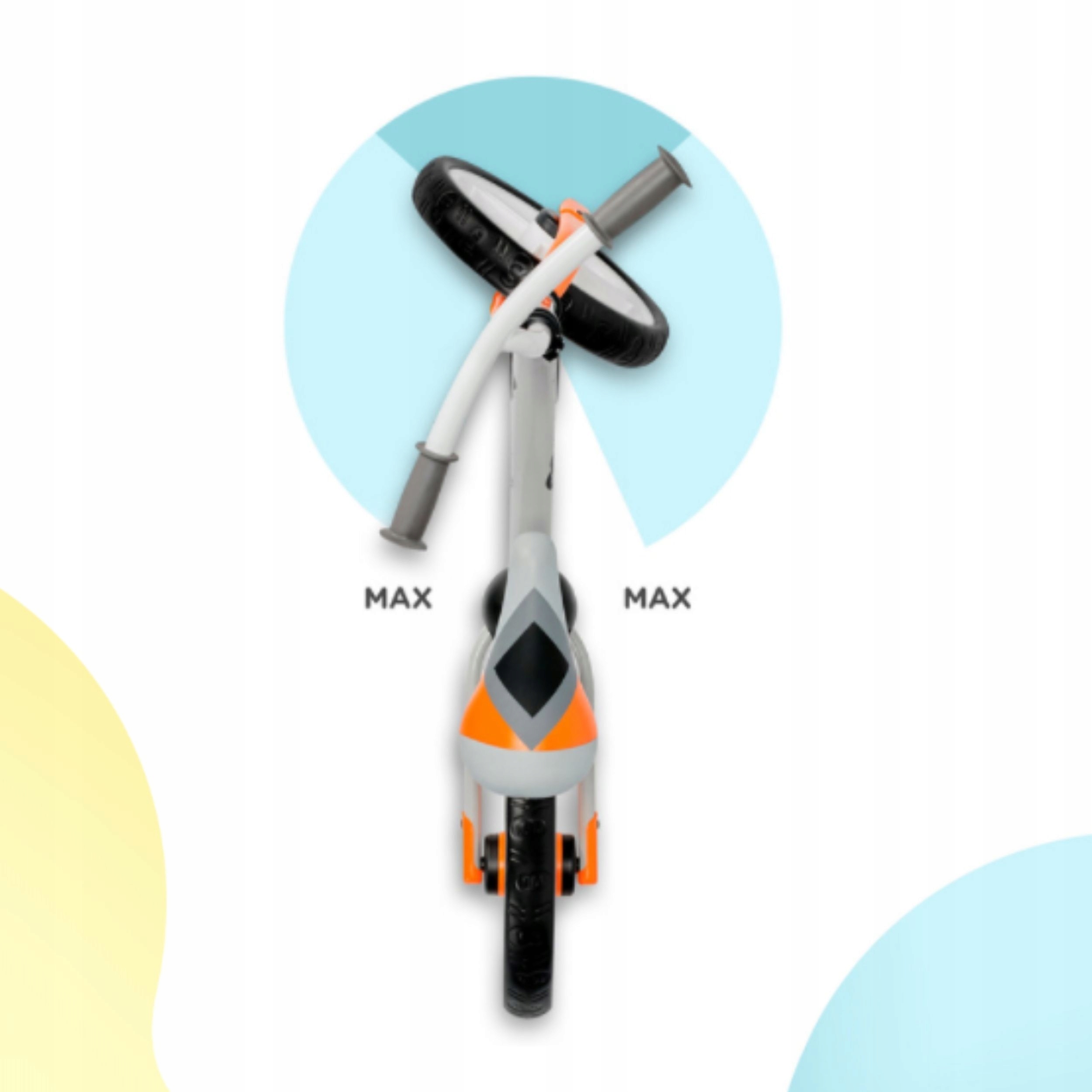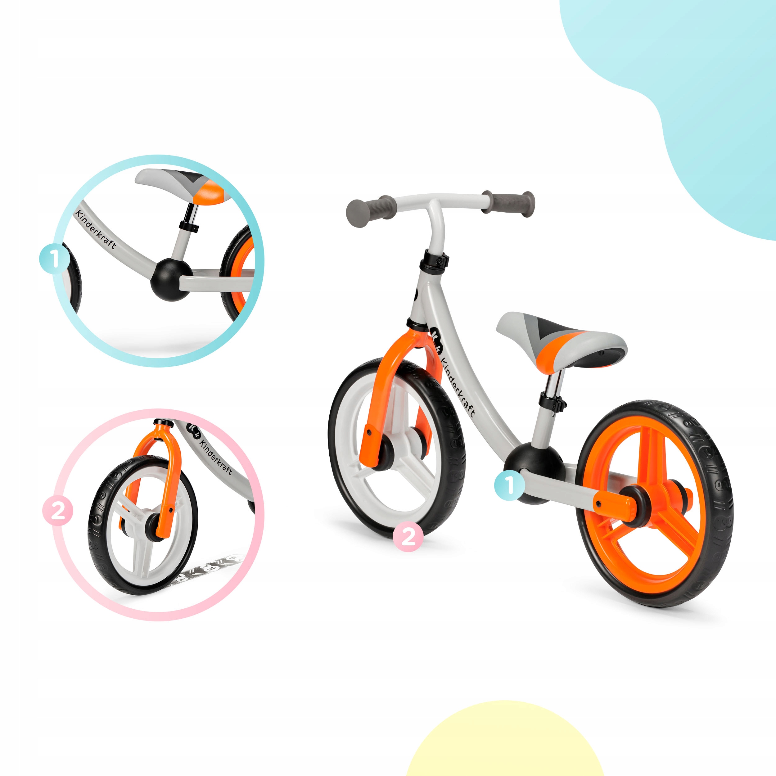 - Kinderkraft lekki rowerek biegowy 2WAY NEXT ma ograniczony skręt kierownicy - dzięki temu rozwiązaniu maluszek ma mniejsze szanse na niekontrolowane, gwałtowne skręty. Dziecko łatwiej opanuje sztukę manewrowania rowerkiem.