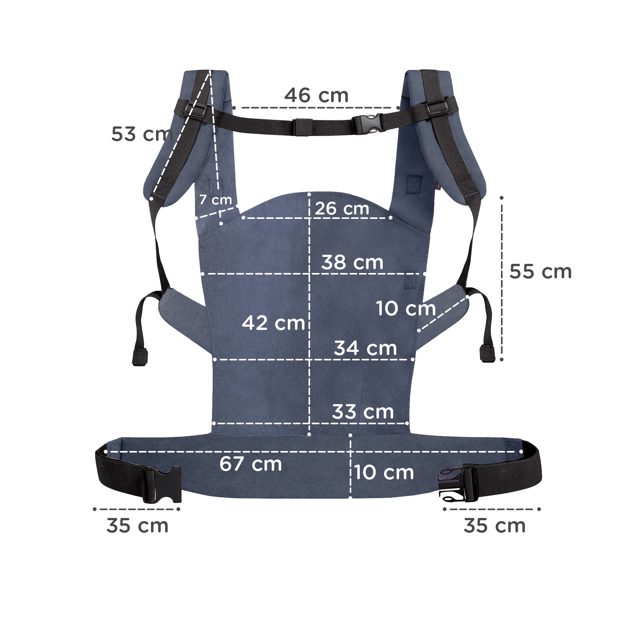 Wygoda noszenia. Klamry nosidełka mają miękki osłonki, które chronią rodziców przed nadmiernym uciskiem.