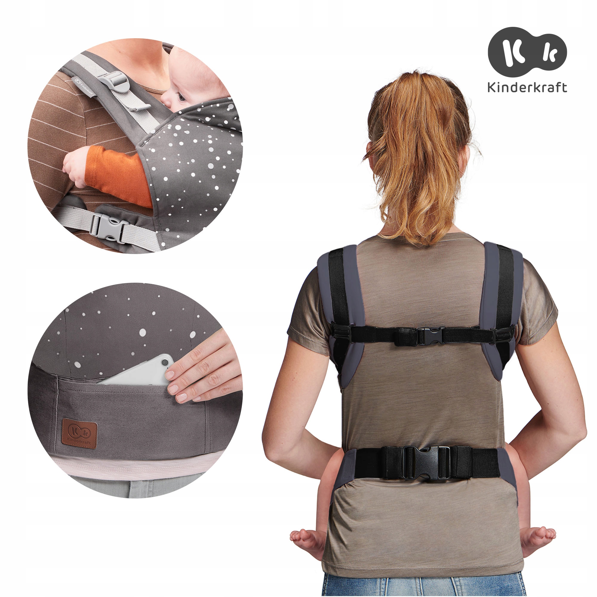 Kinderkraft NINO nosidełko ergonomiczne do 20 kg Confetti Grey umożliwia noszenie dziecka: