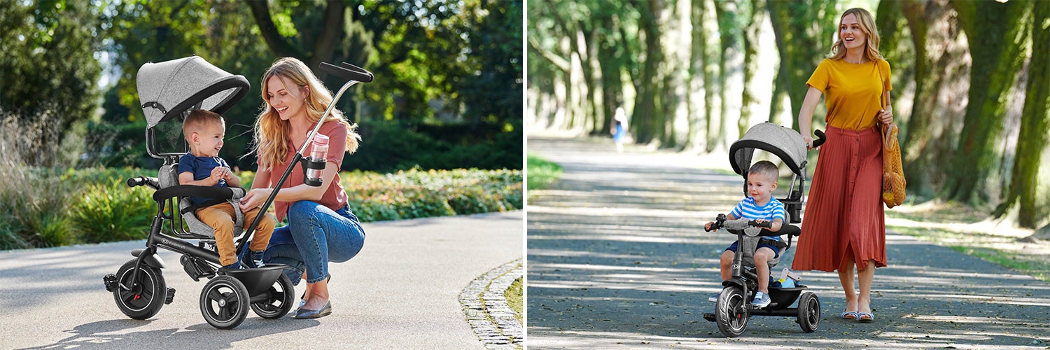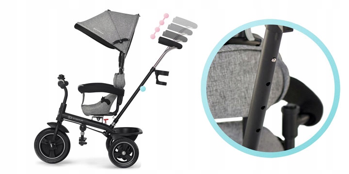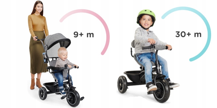Demontowane elementy, takie jak rączka rodzica, oparcie, daszek i barierka, pozwalają na dopasowanie rowerka do wieku i wzrostu dziecka przez co będzie on mógł towarzyszyć Wam przez lata! Maluch może jeździć z asystą rodzica lub samodzielnie.