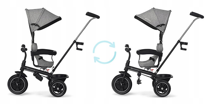 Obracane siedzisko pozwala na jazdę zarówno tyłem, jak i przodem do kierunku jazdy. Siedzisko w rowerku można dowolnie regulować, aby znajdowało się bliżej lub dalej od oparcia i barierki. Regulacja jest możliwa jedynie podczas jazdy przodem.