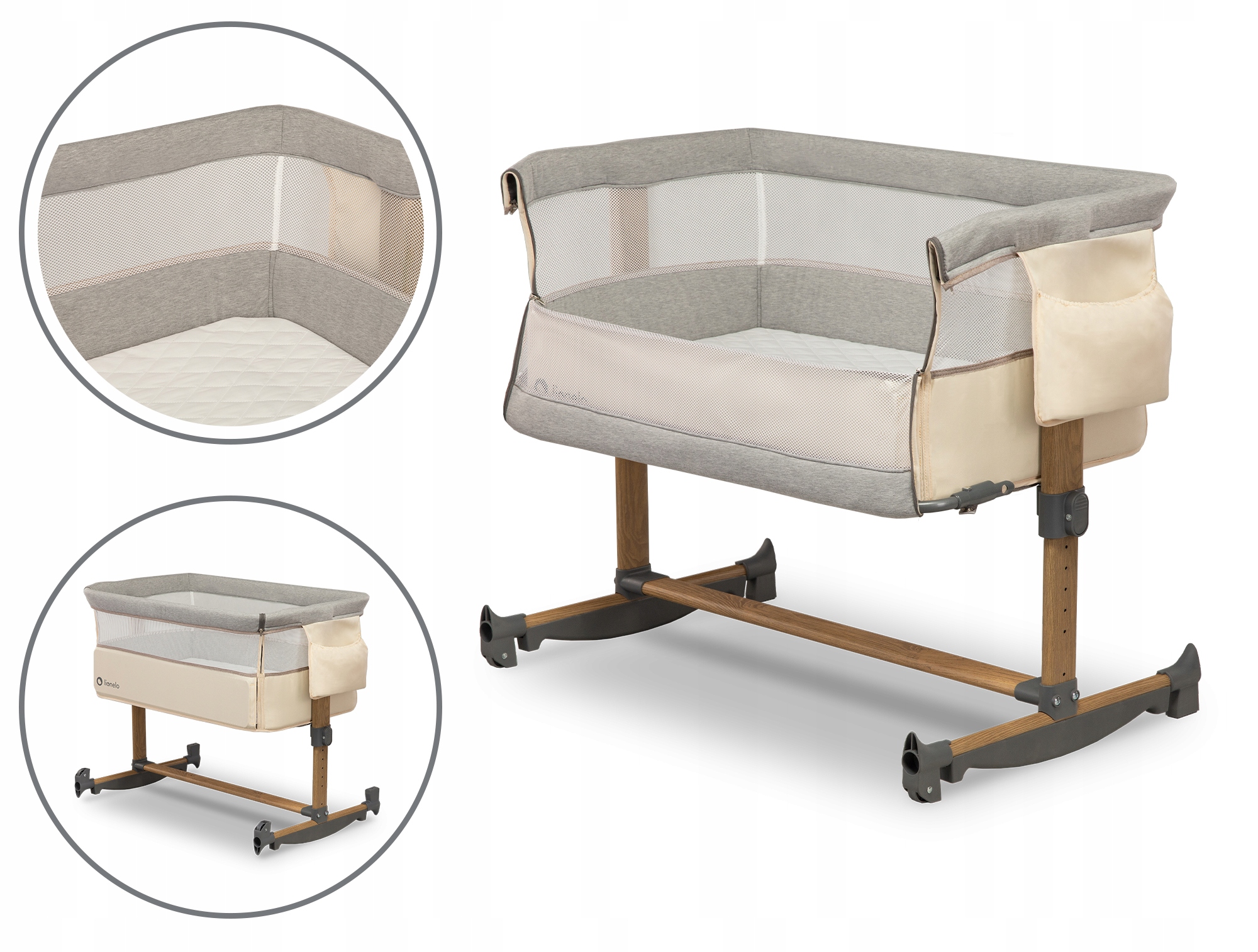 LIONELO dostawne duże 3w1 LEONIE Dostawka kołyska łóżko dziecięce Beige