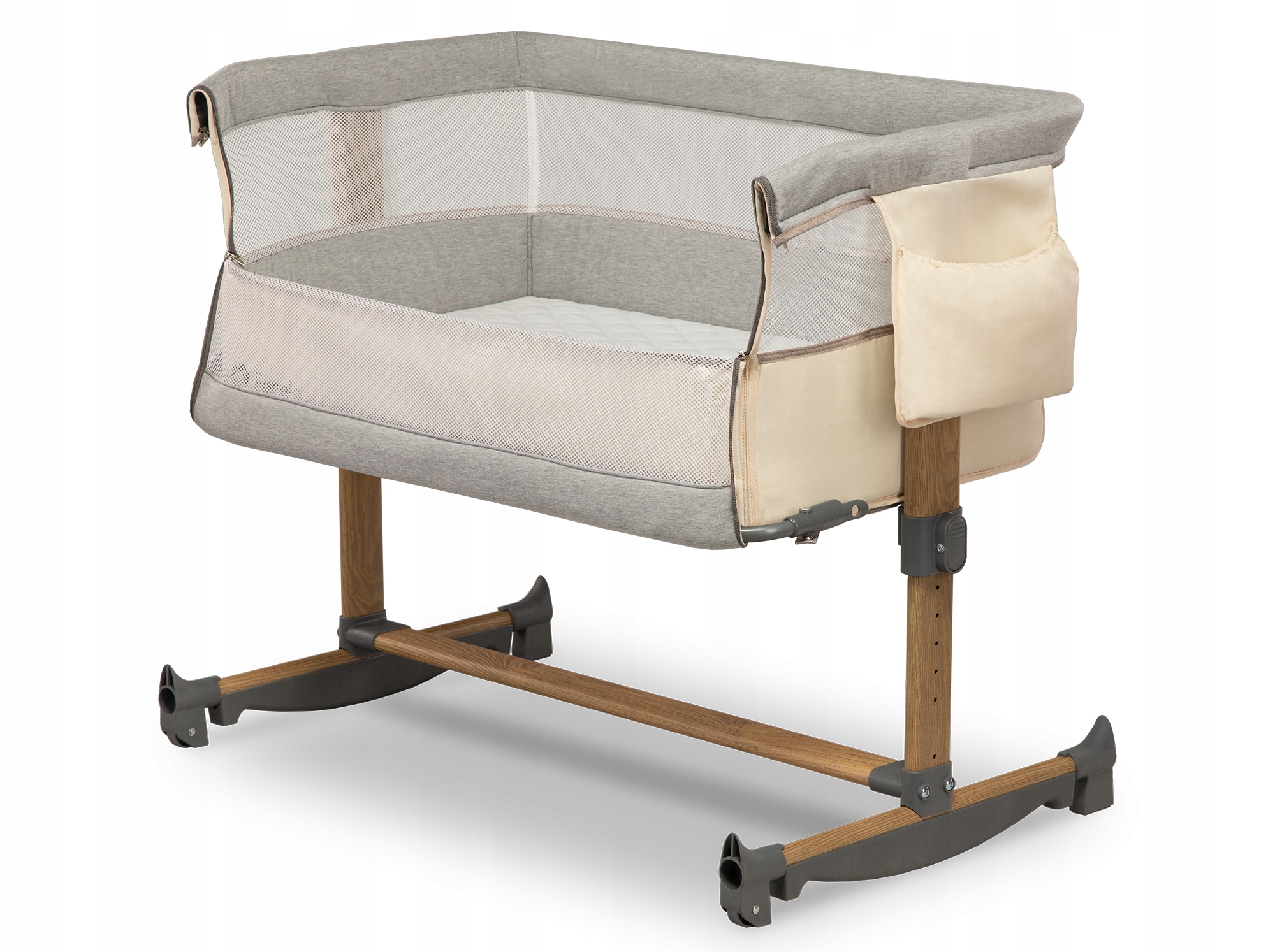 Dzięki obracanym końcówkom nóg, łóżeczko można w prosty sposób zamienić w kołyskę dziecięcą, która umożliwia delikatne, uspokajające bujanie. Maluszek może się w pełni zrelaksować i zasnąć w rytmie spokojnego kołysania.
