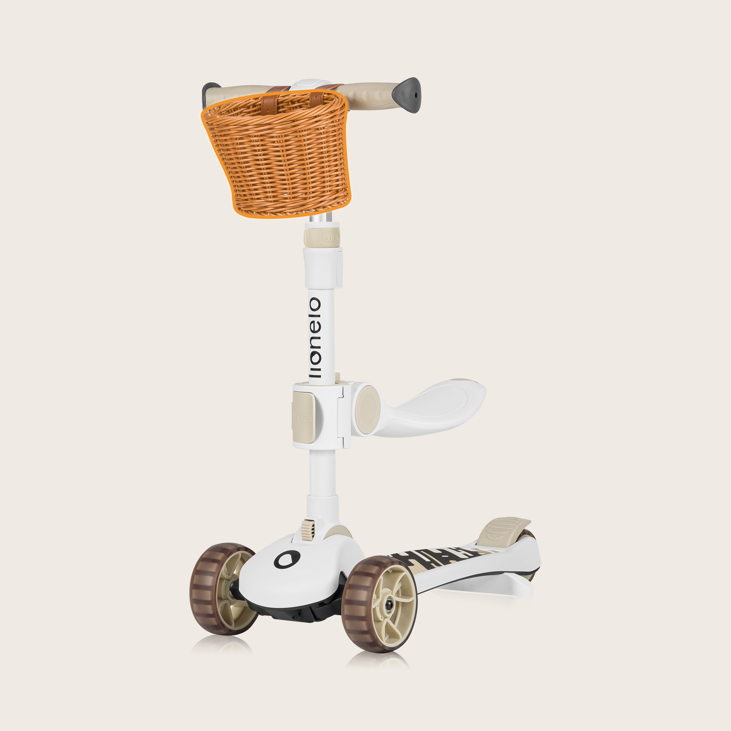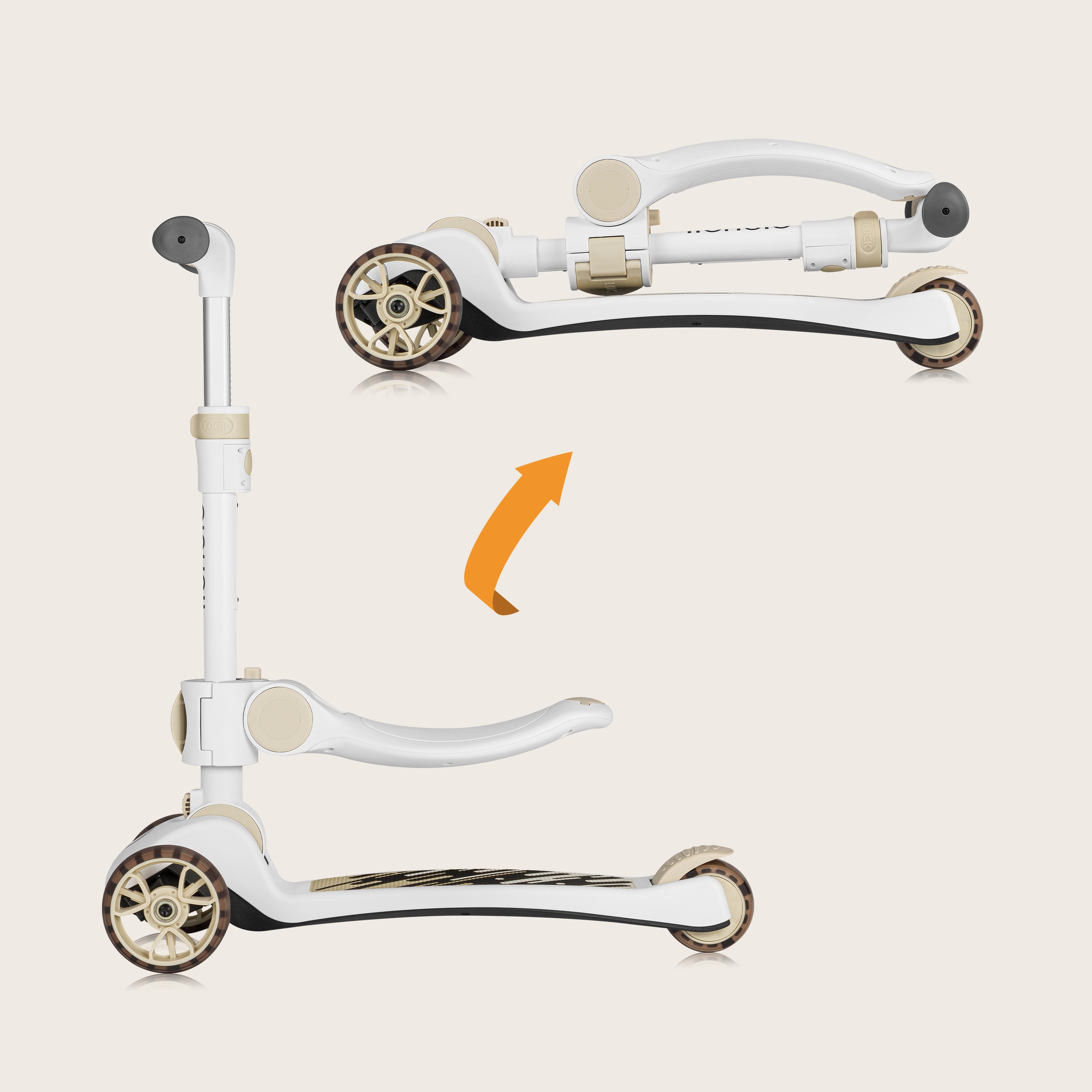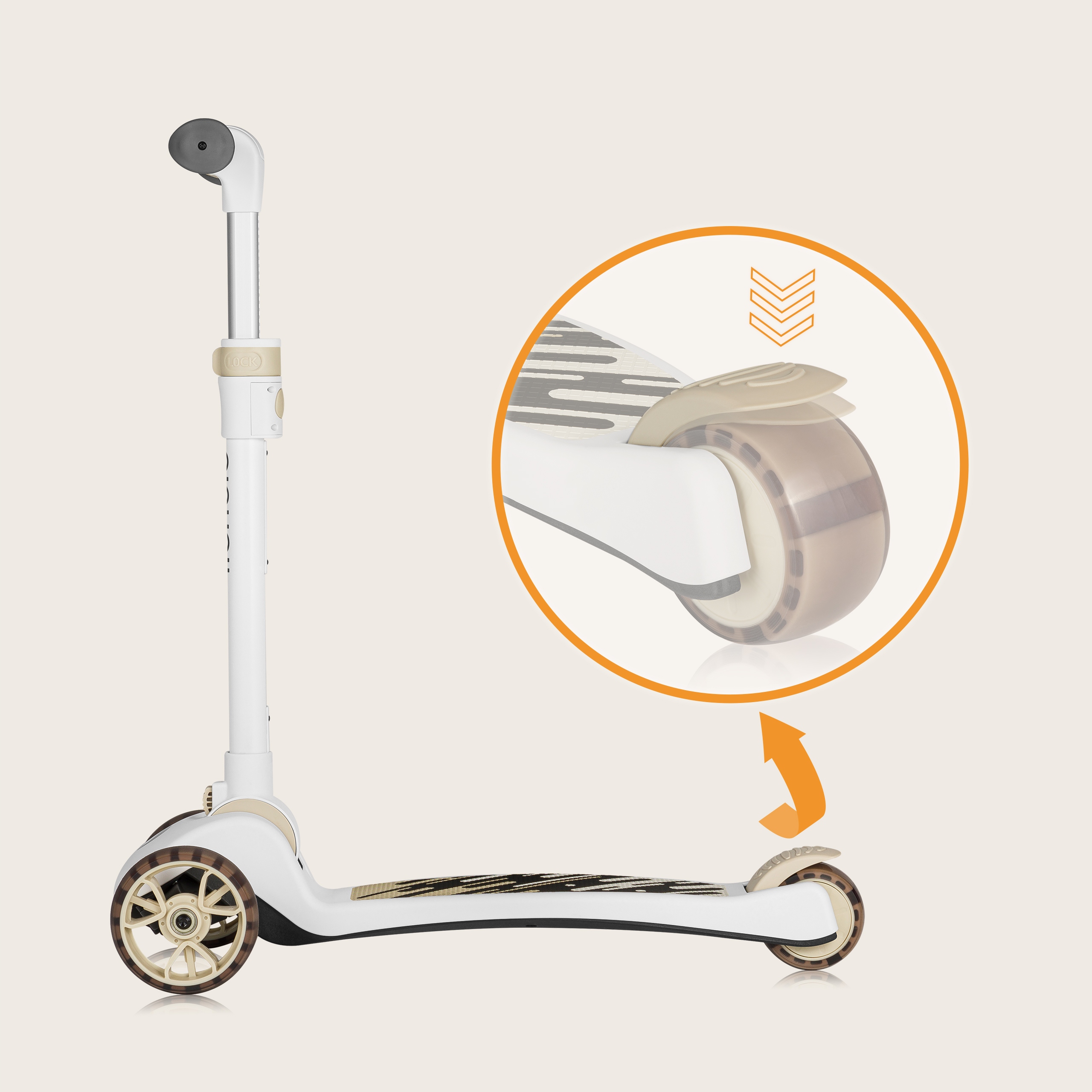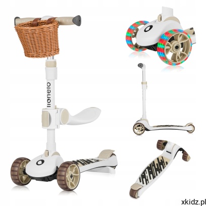 LIONELO Hulajnoga składana jeżdzik dla dzieci trójkołowy led Franky Beige
