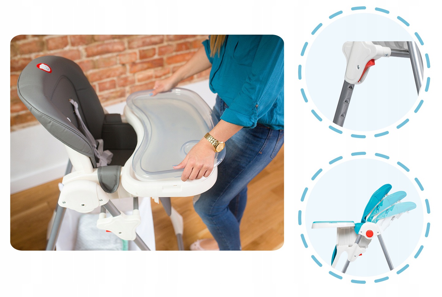 - 3-stopniowa regulacja tacy zapewnia doskonałe dopasowanie do dziecka.