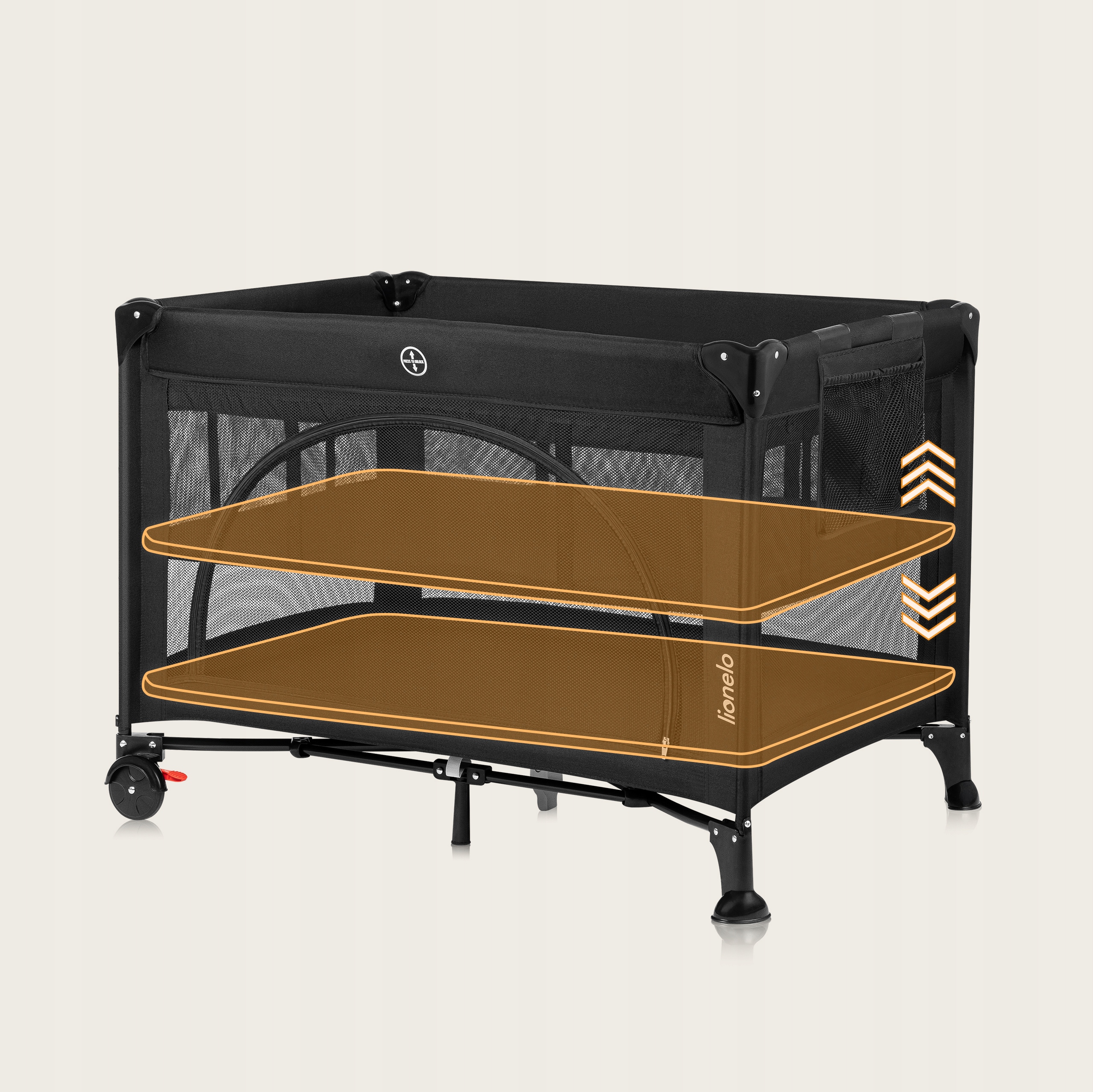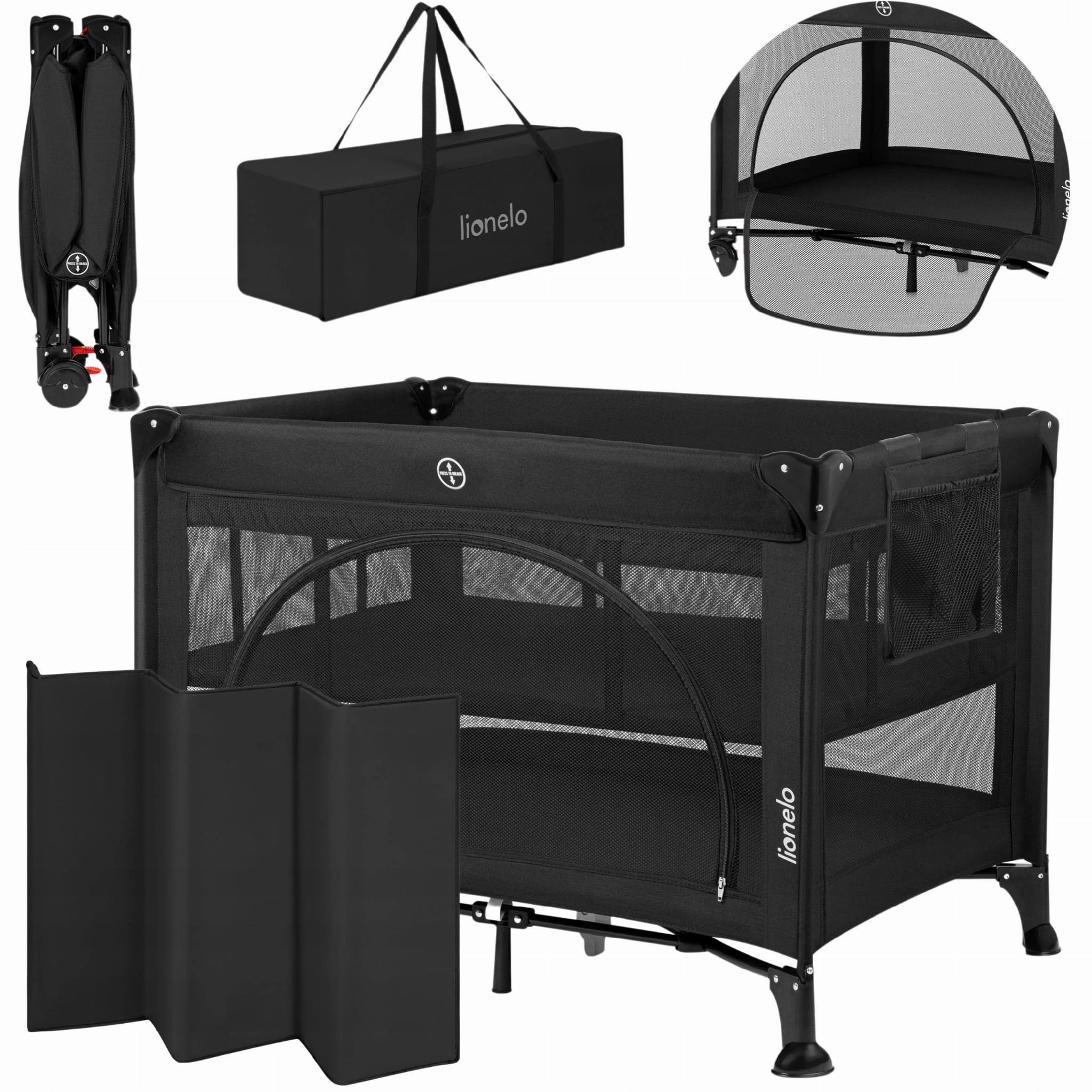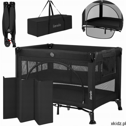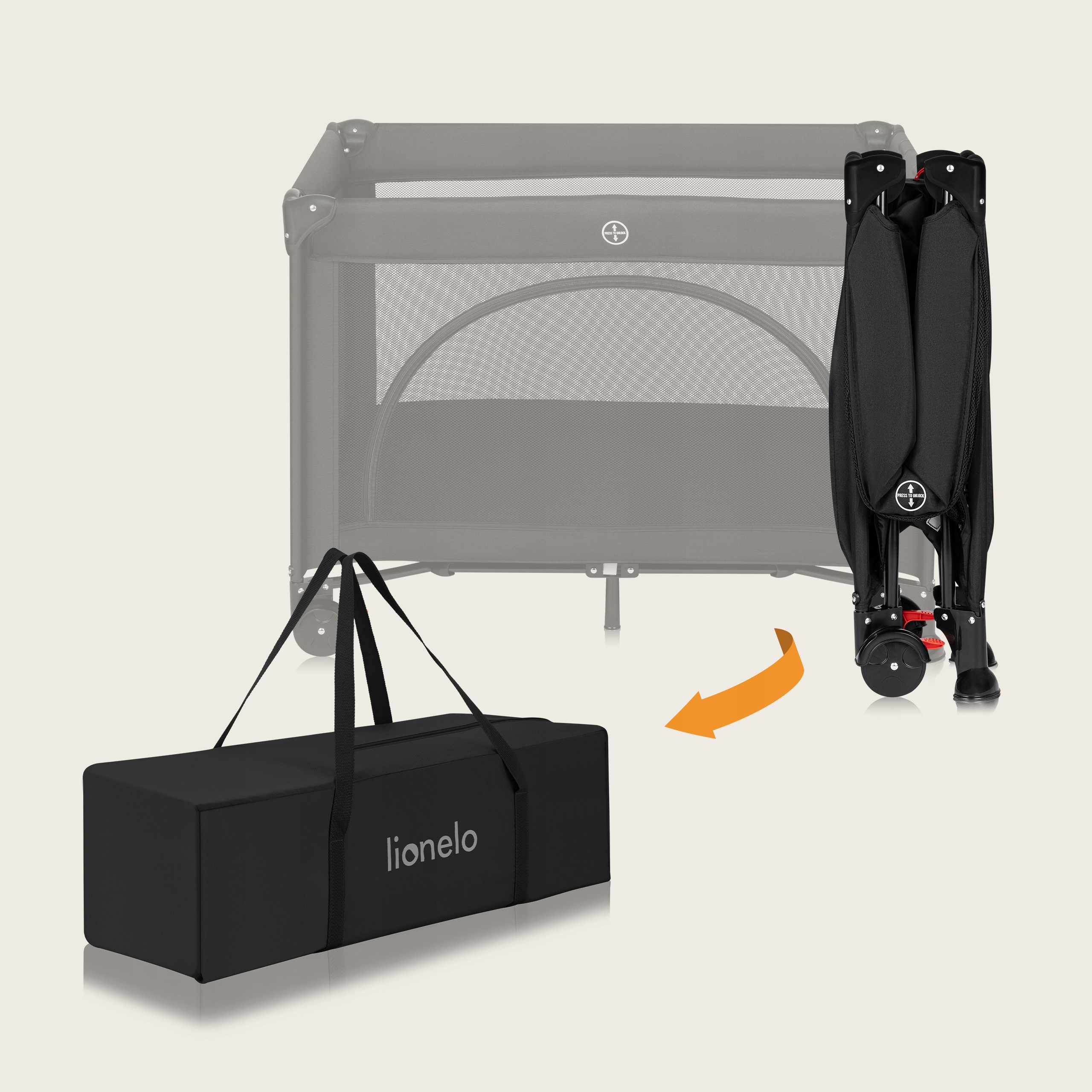 LIONELO Łóżeczko turystyczne DWUPOZIOMOWE kojec + torba LAURA Black
