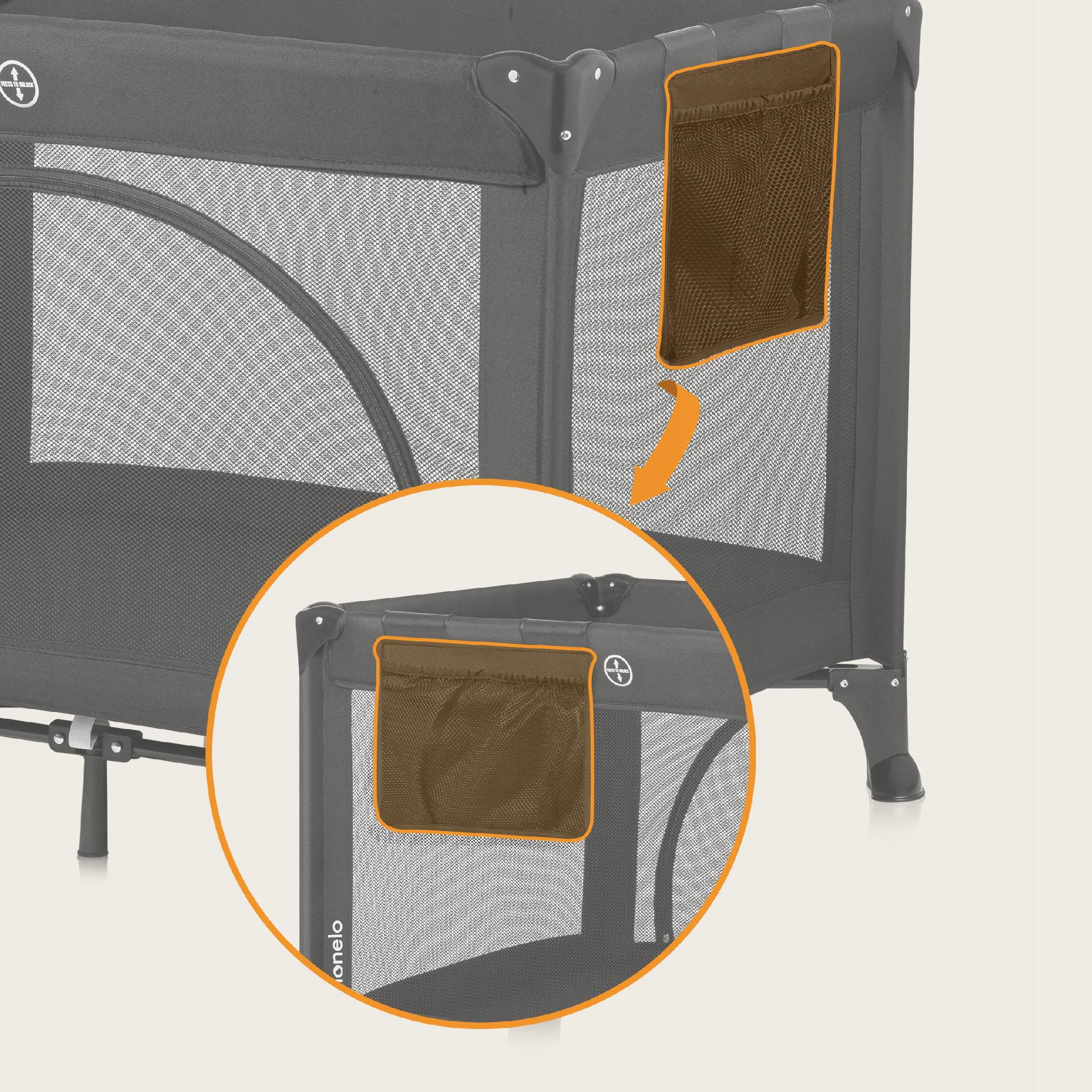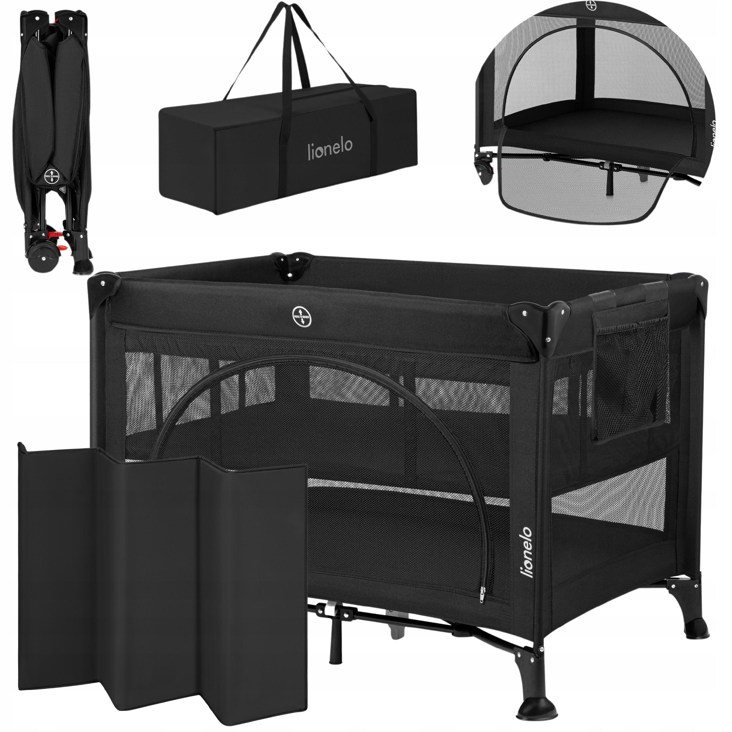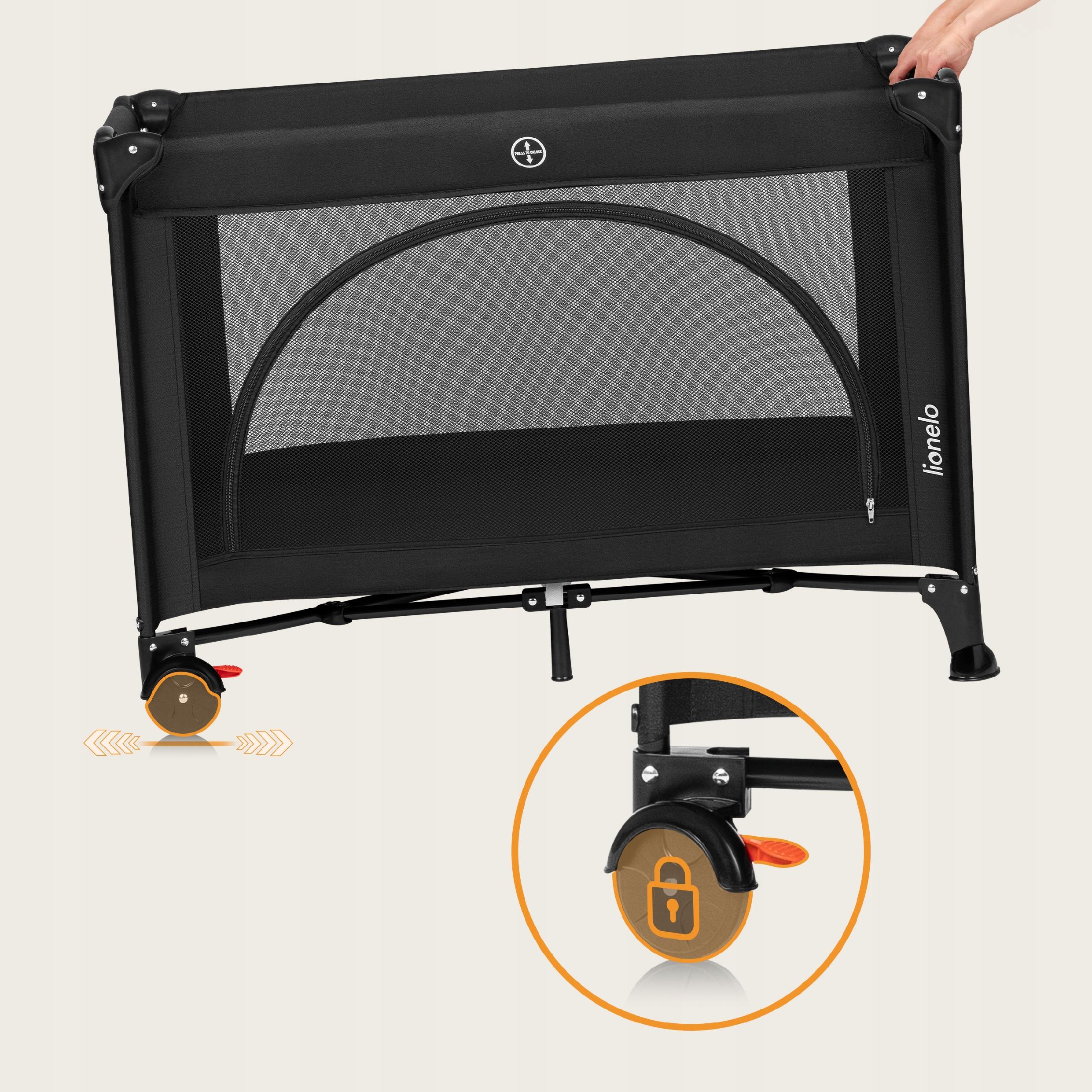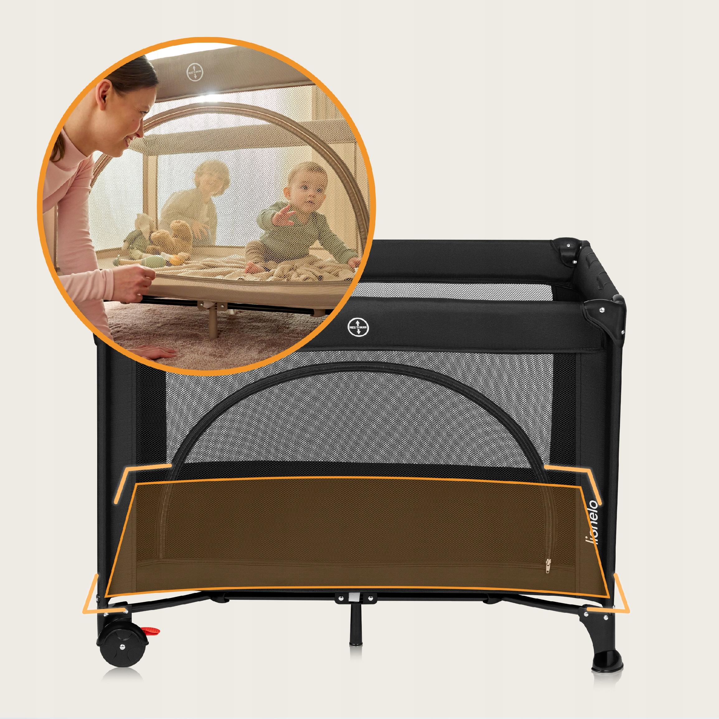 LIONELO Łóżeczko turystyczne DWUPOZIOMOWE kojec + torba LAURA Black
