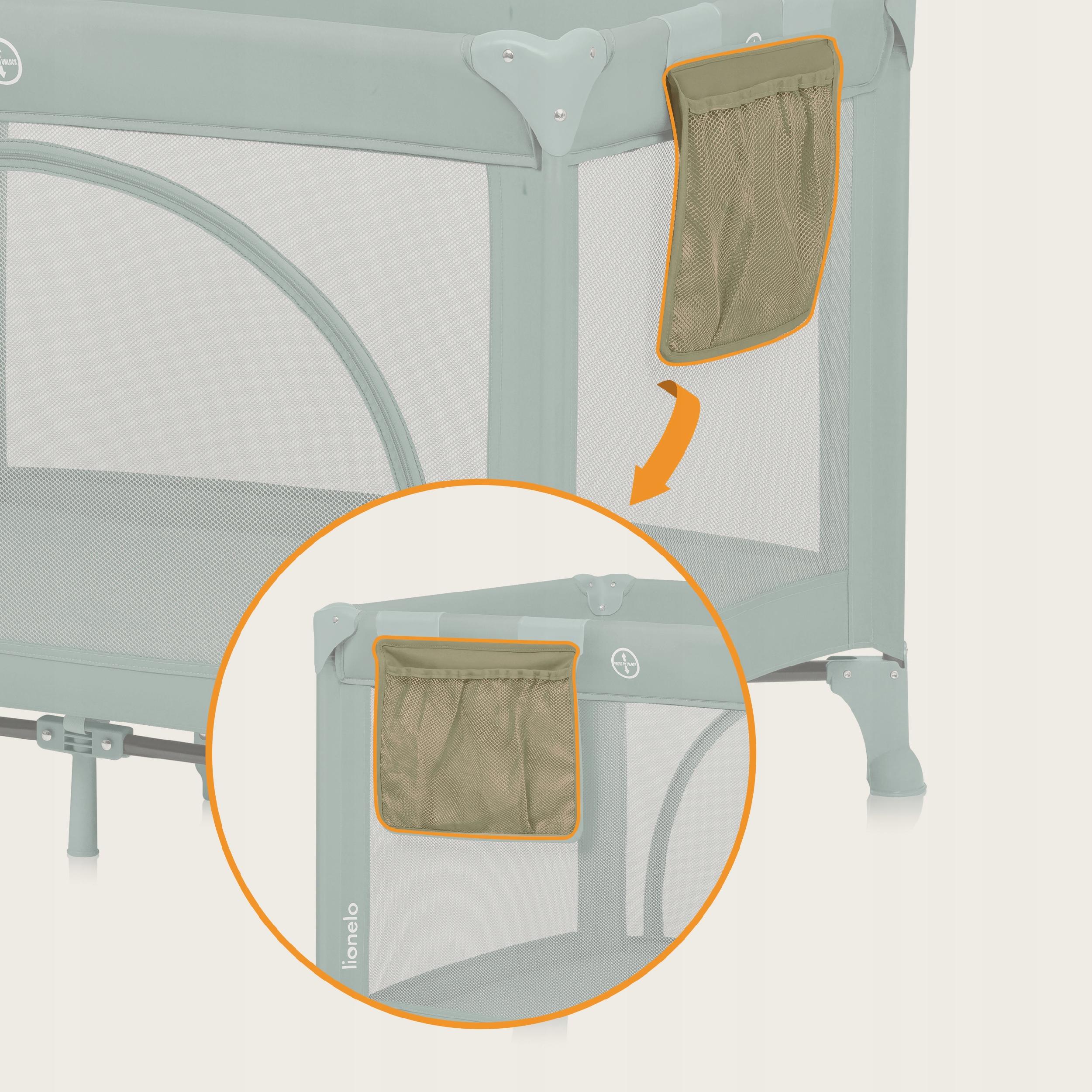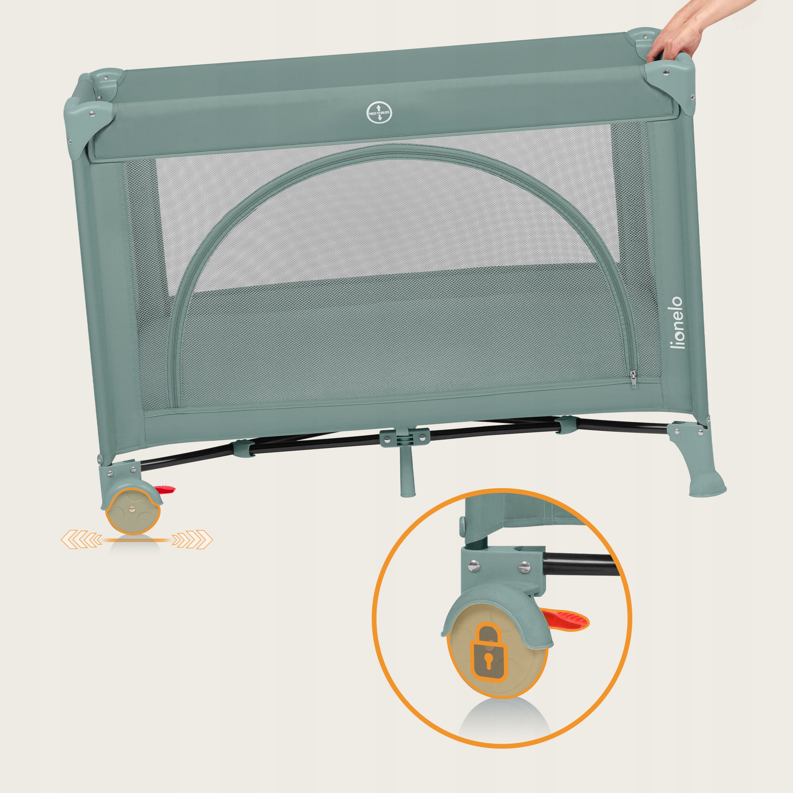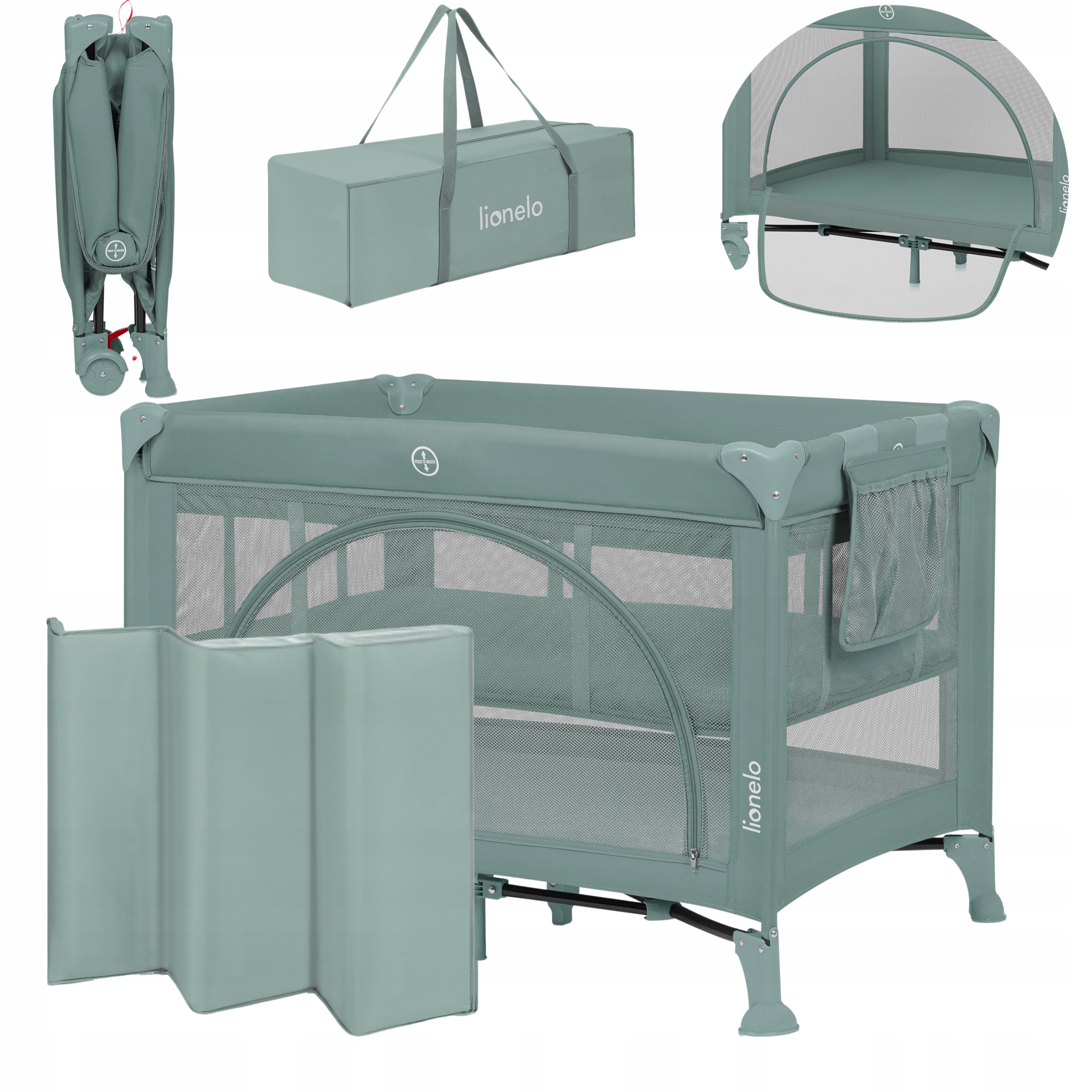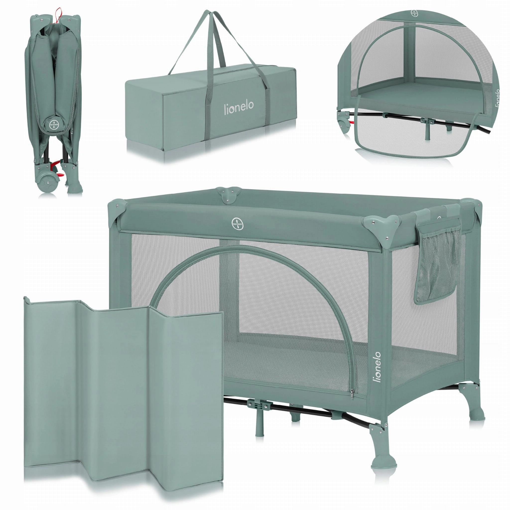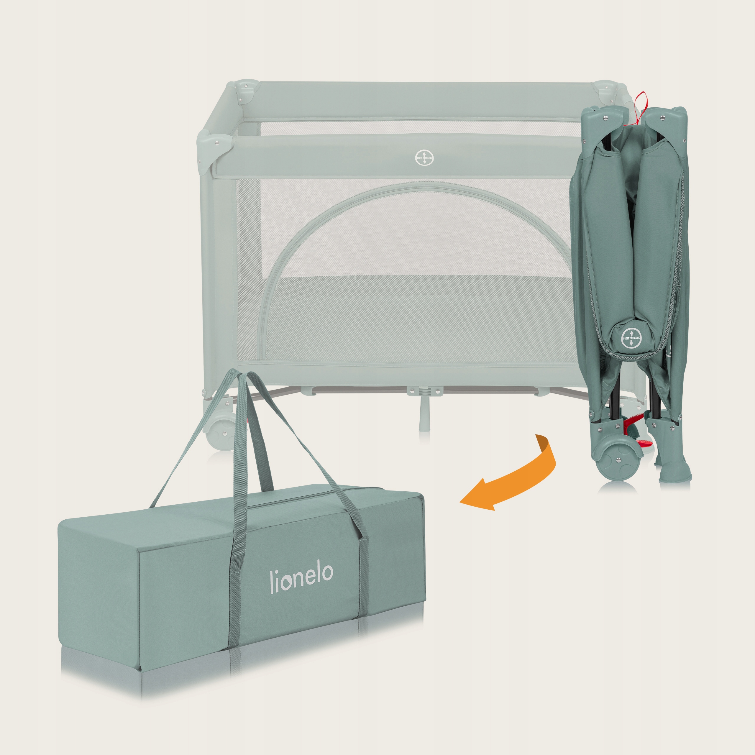 LIONELO Łóżeczko turystyczne DWUPOZIOMOWE kojec + torba LAURA Green