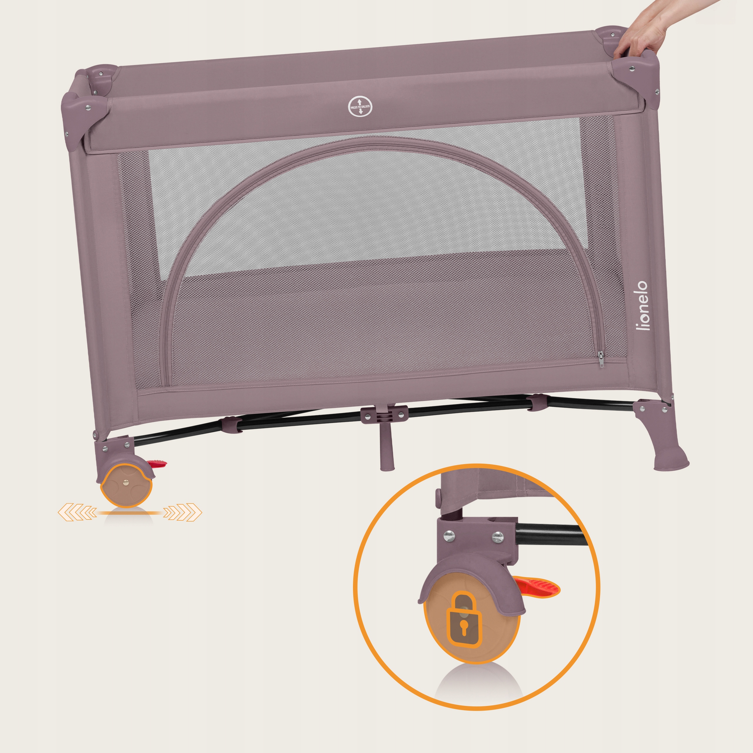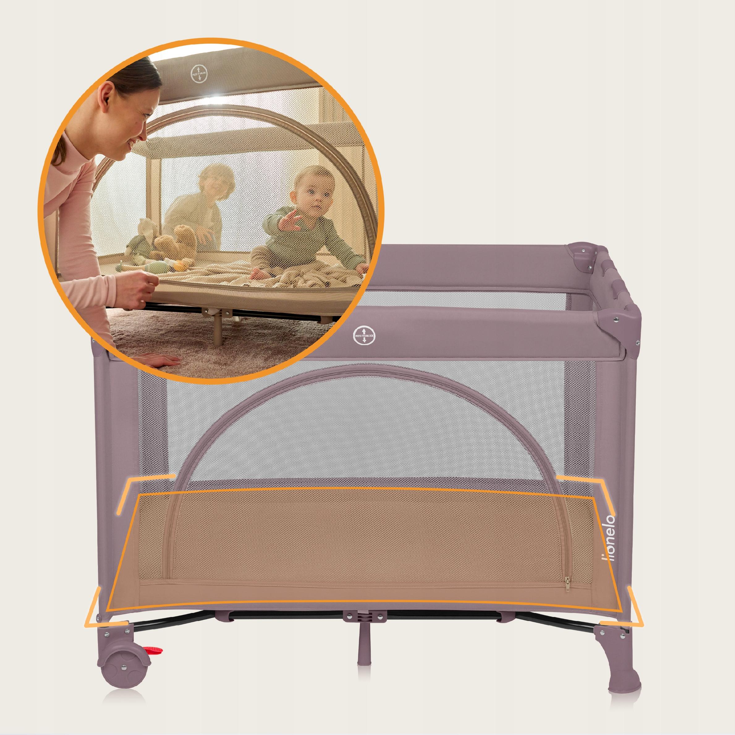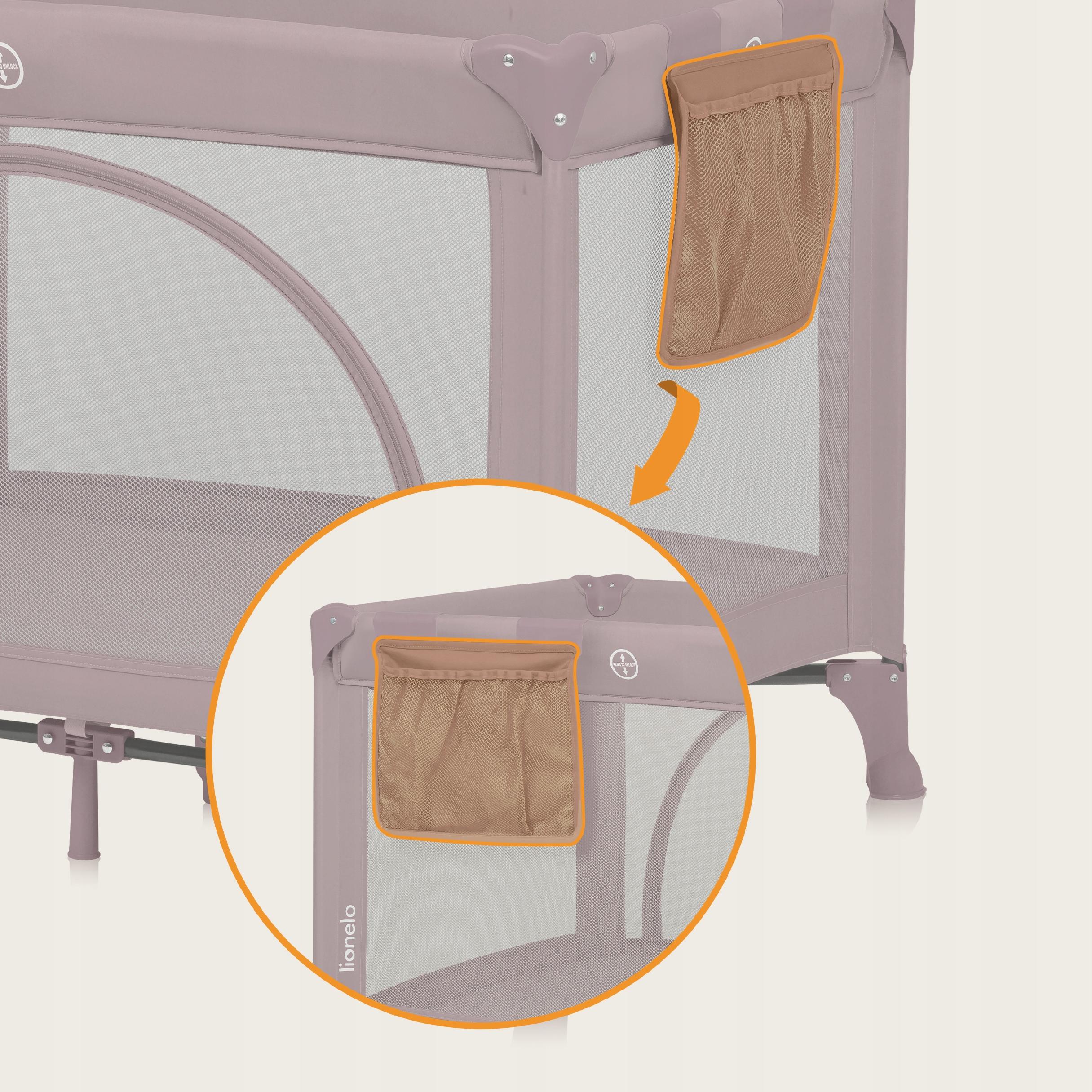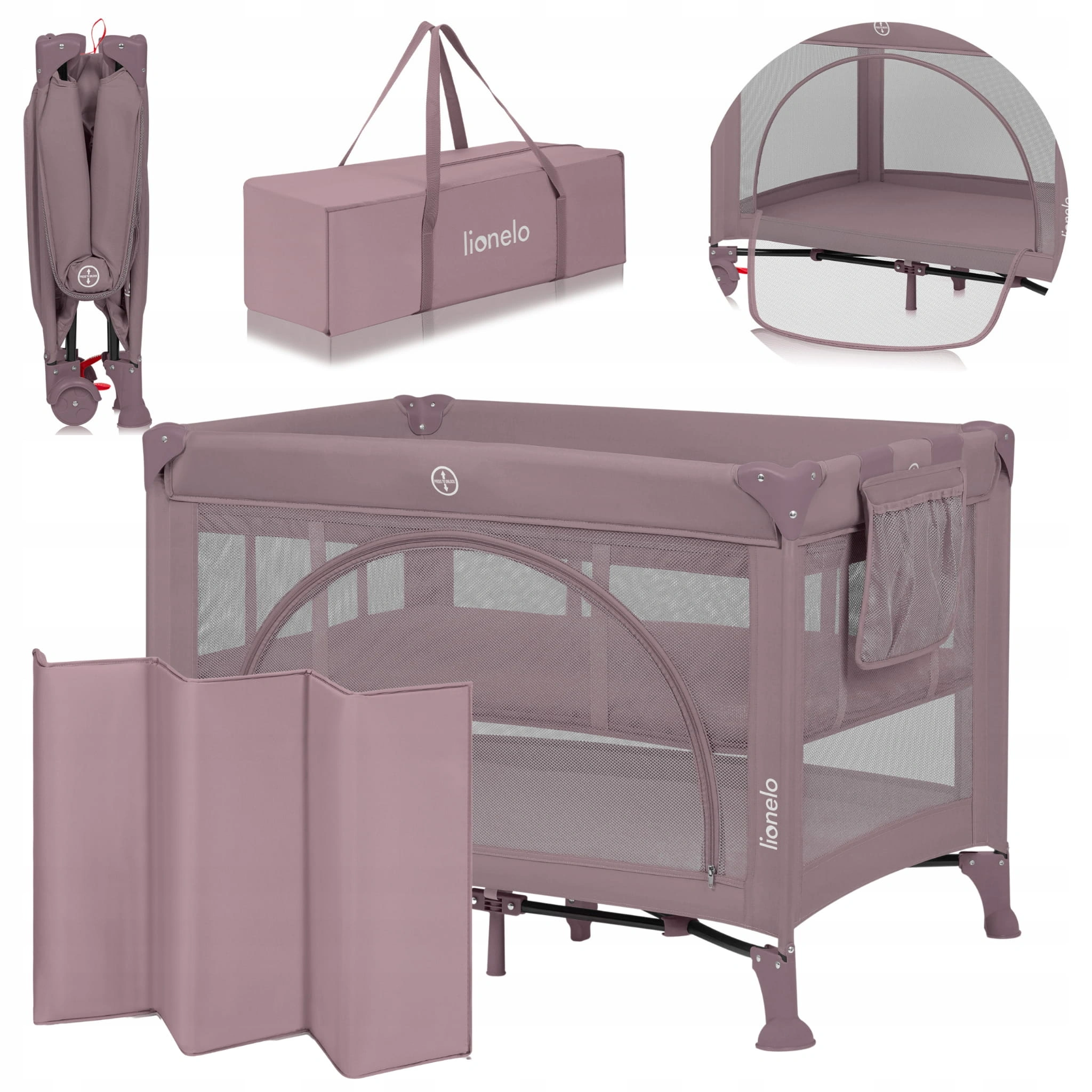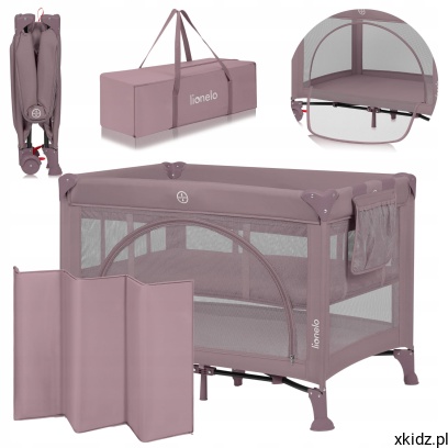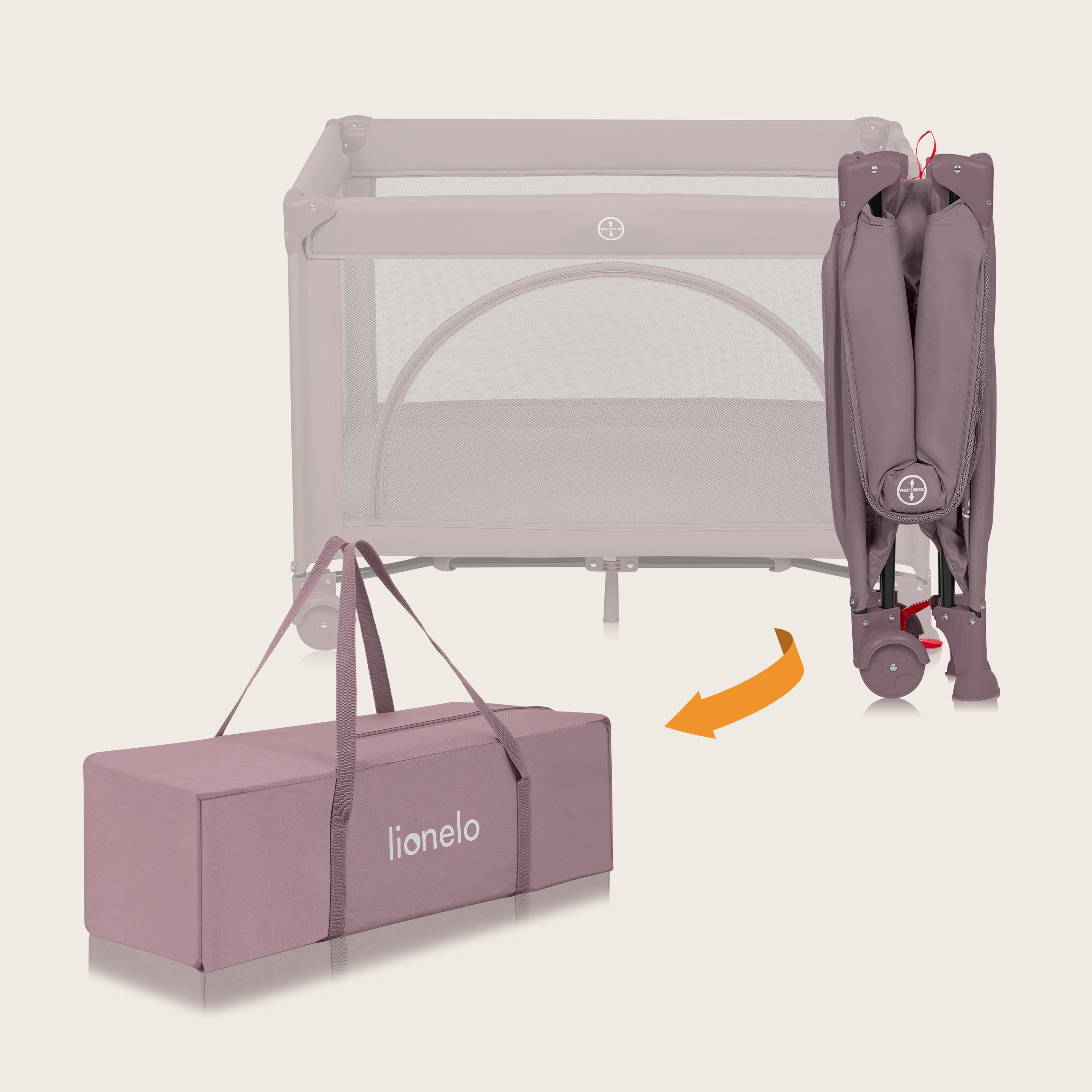 LIONELO Łóżeczko turystyczne DWUPOZIOMOWE kojec + torba LAURA Pink nude