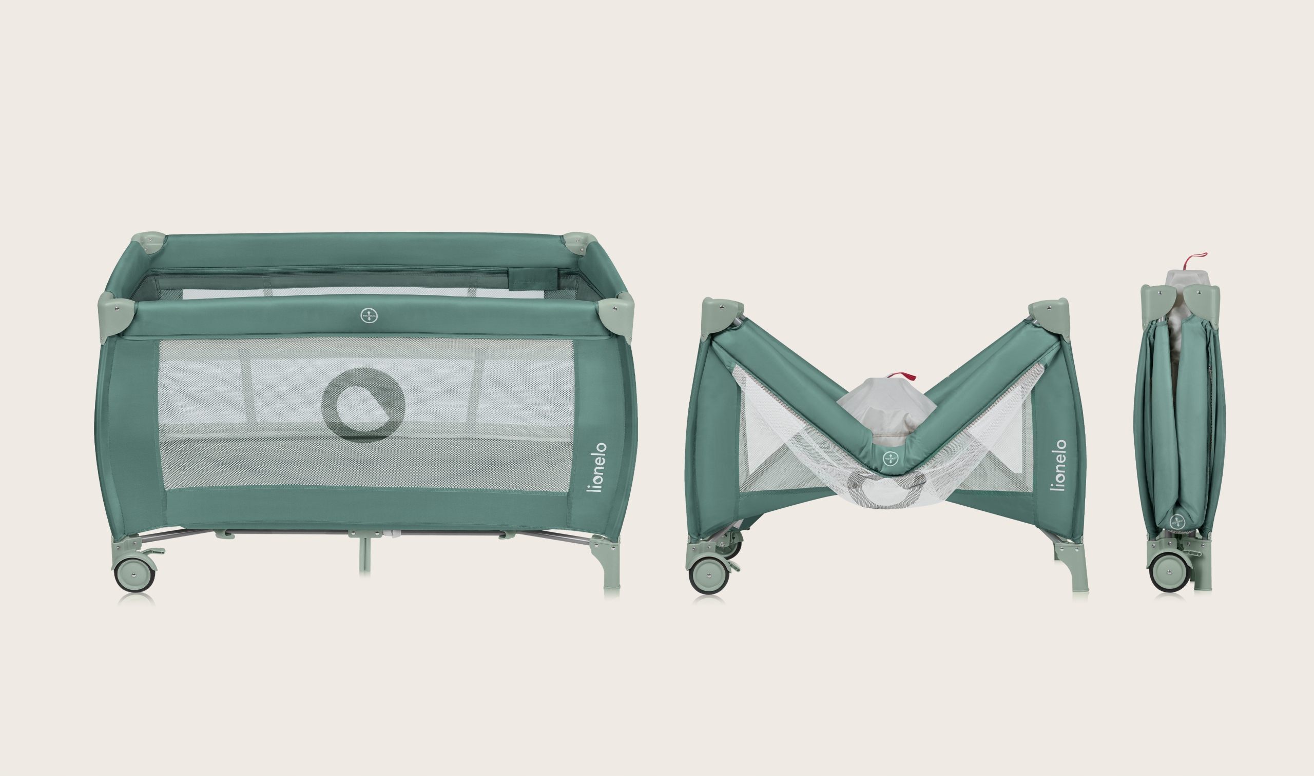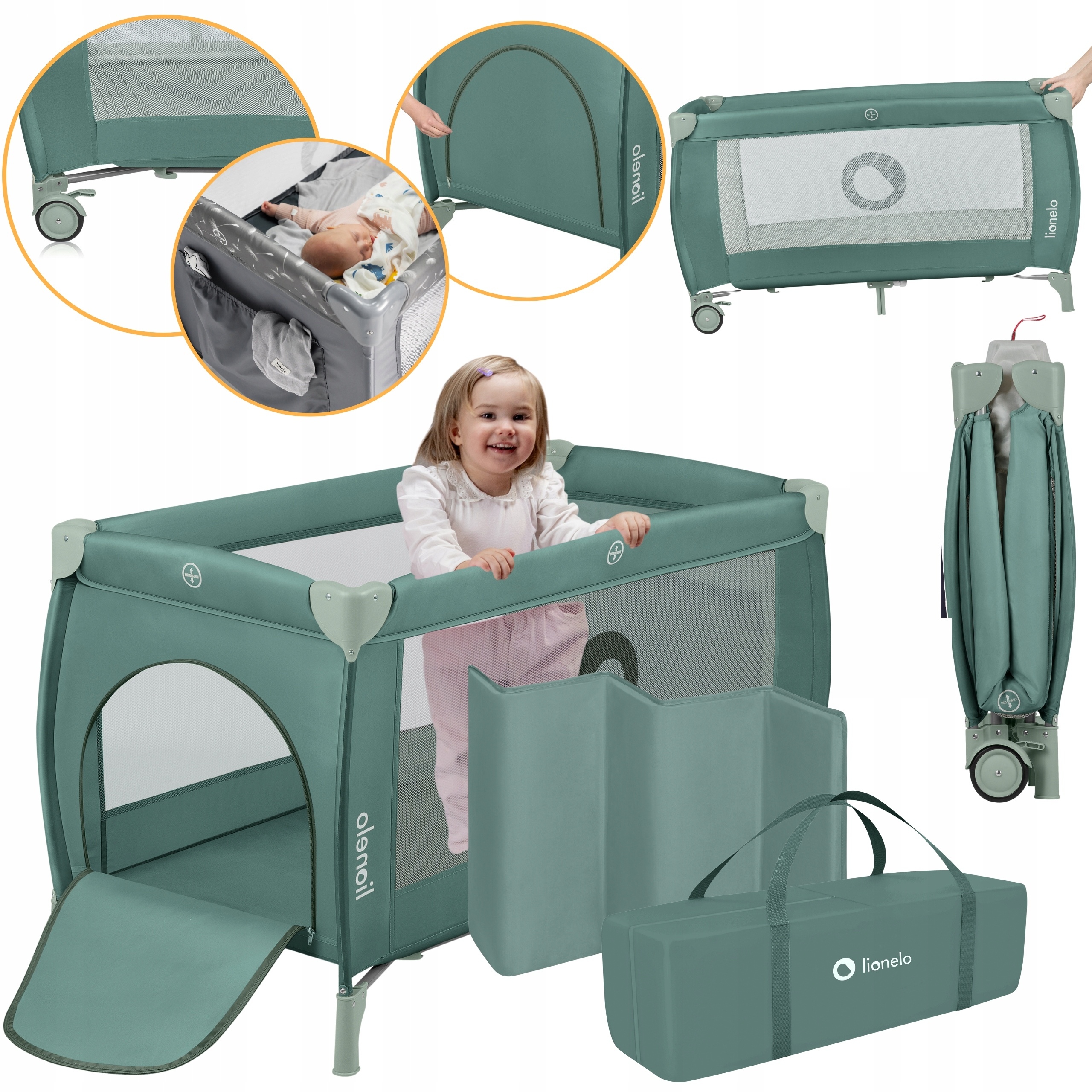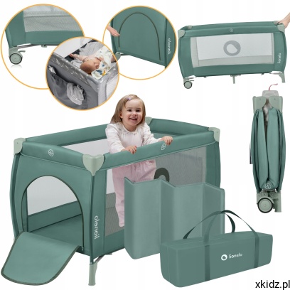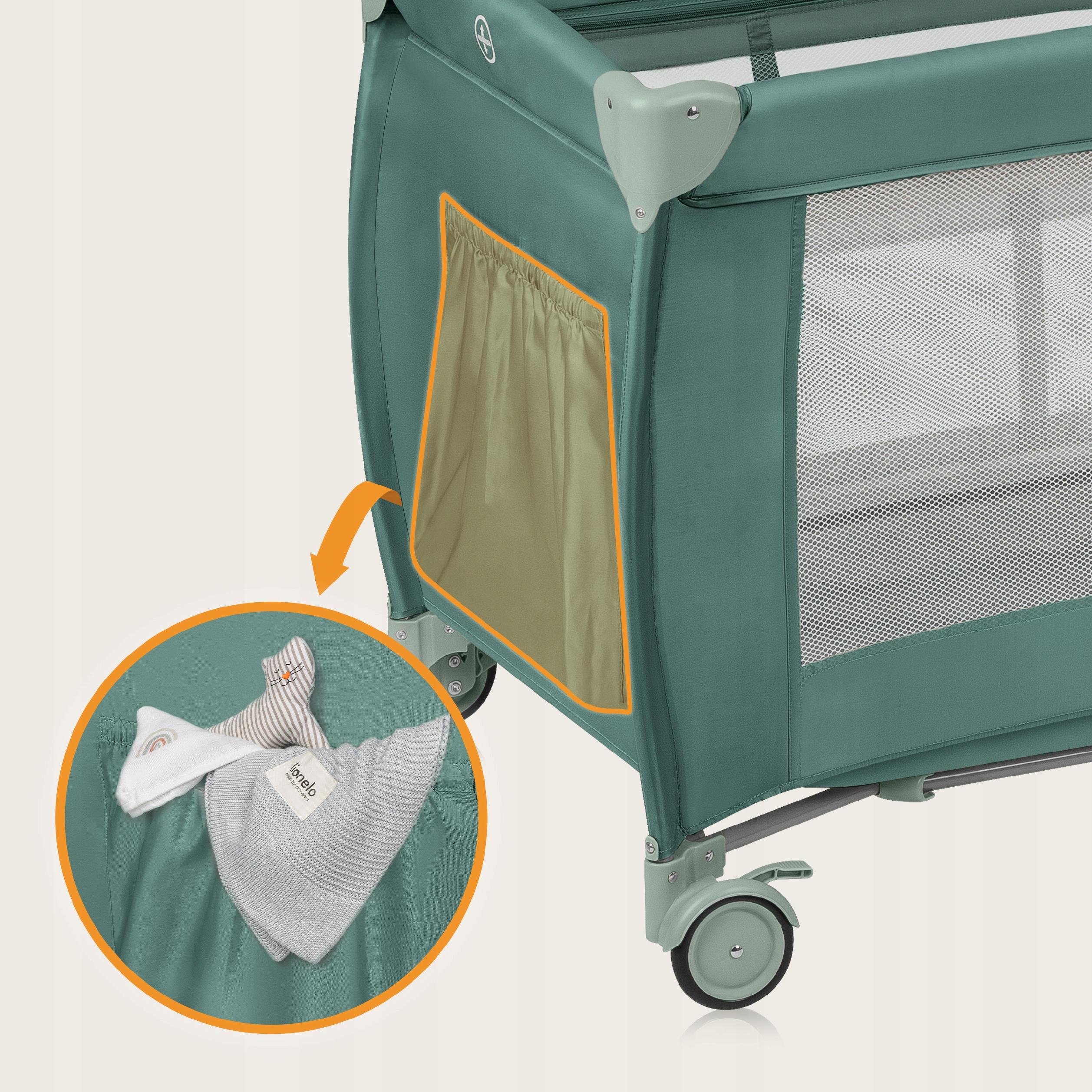 LIONELO Łóżeczko turystyczne DWUPOZIOMOWE kojec + torba Stefi Plus Green