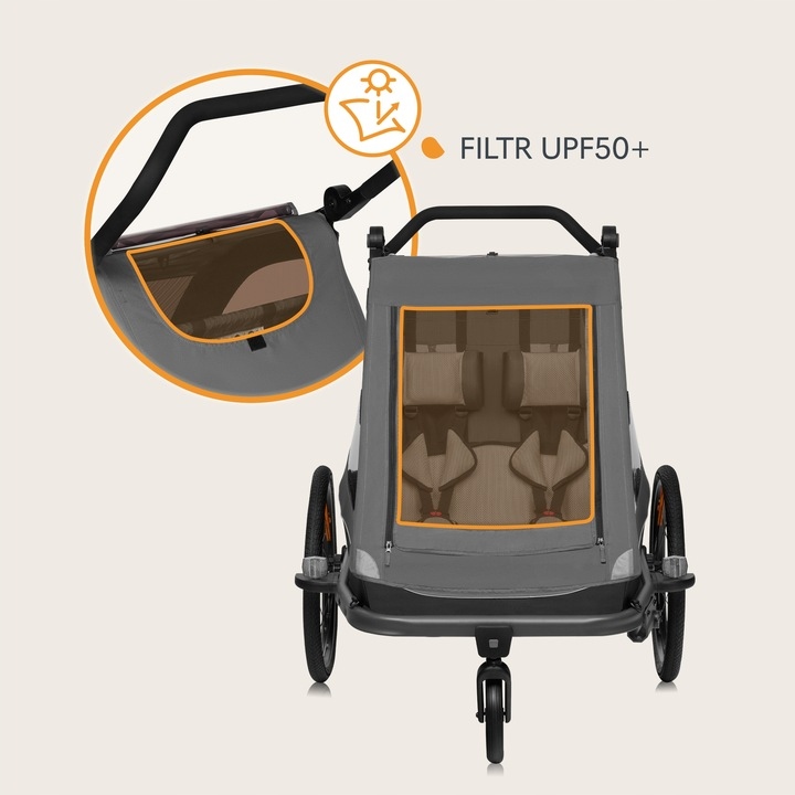 Przyczepka rowerowa dla 1 lub 2 dzieci z funkcją wózka spacerowego