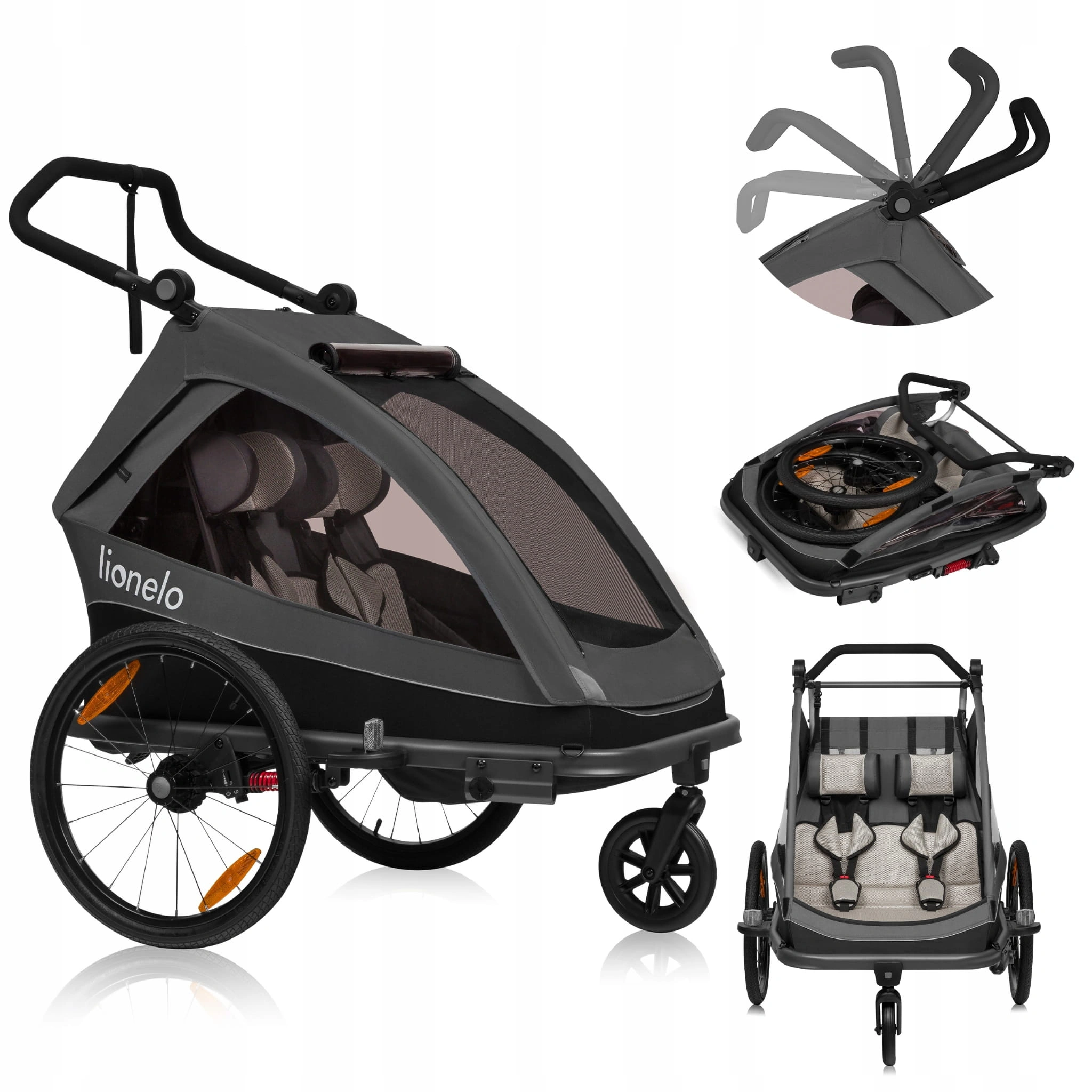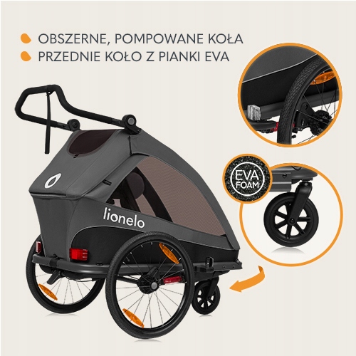 Lionelo Przyczepka rowerowa składana dla dzieci 2w1 wózek spacerowy CAMA Grafit