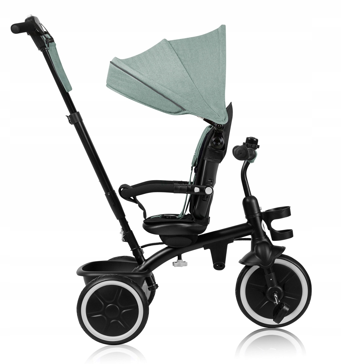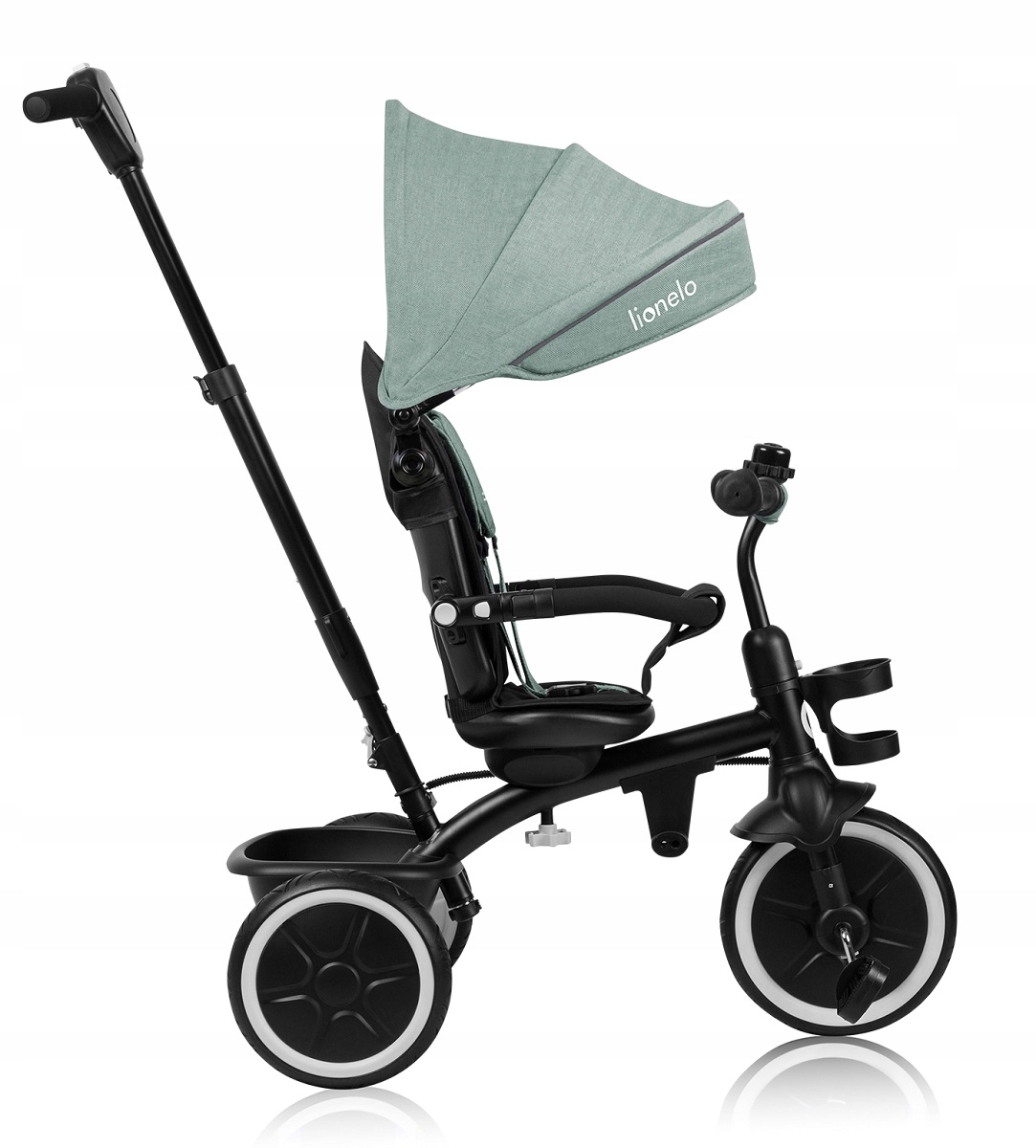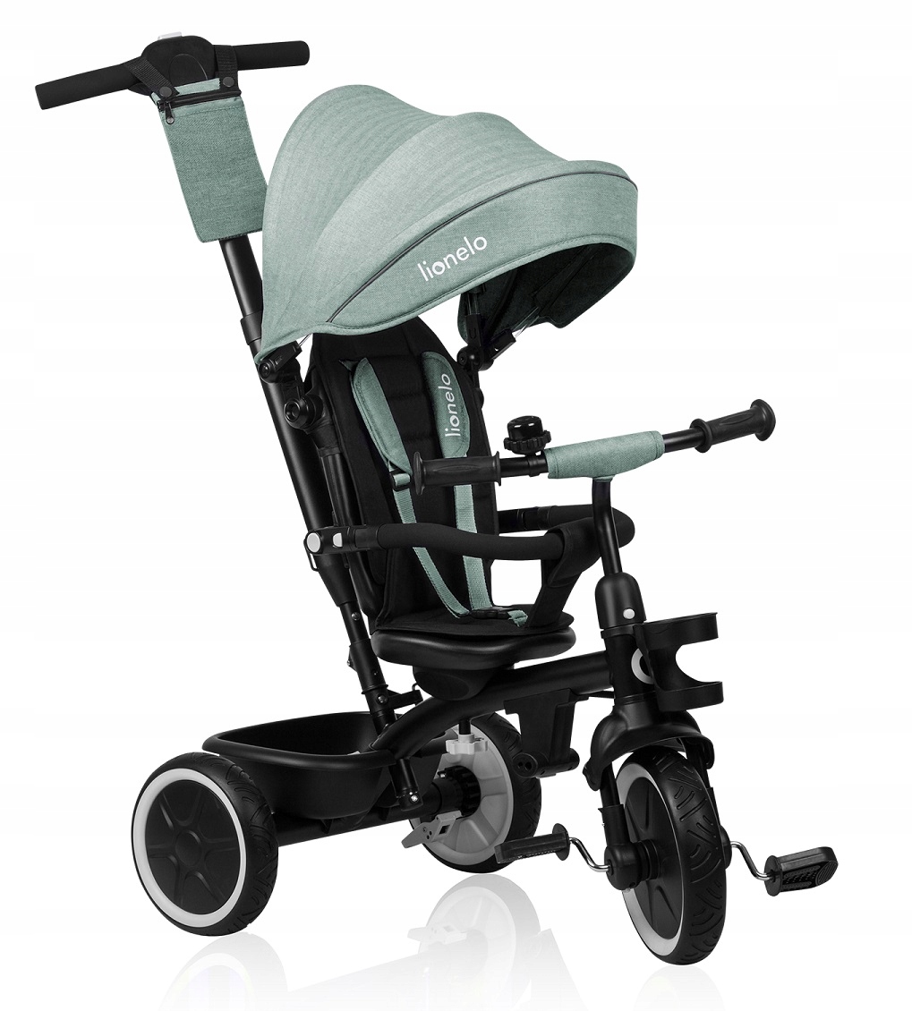 LIONELO BERRY to wielofunkcyjny produkt łączący rowerek spacerowy z jeździkiem trójkołowym. Bezobsługowe i nieprzebijalne koła wykonane z gumy PU poradzą sobie zarówno na prostej drodze, jak i nierównościach. Natomiast obrotowe siedzisko 360° pozwala na dostosowanie ustawień do preferencji malucha. Z myślą o najmłodszych dzieciach zastosowano system przepięcia pedałów, dzięki czemu mogą pełnić funkcję podnóżka. Regulowana wysokość uchwytu dla rodzica pozwala na dopasowanie ustawień do wzrostu opiekuna. W trosce o wygodę podczas codziennego użytkowania, rowerek posiada tak zwane wolne koło, które pozwala dziecku pedałować bez wpływu na faktyczne tempo oraz kierunek jazdy – system sterowania jest umieszczony w uchwycie dla rodzica. Cała konstrukcja montowana jest na klik, dzięki czemu nie wymaga stosowania dodatkowych narzędzi.