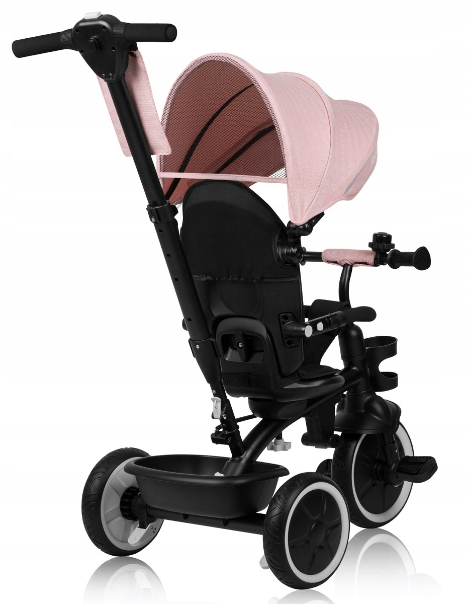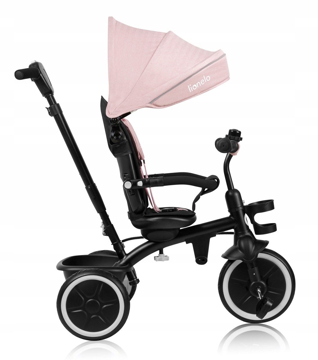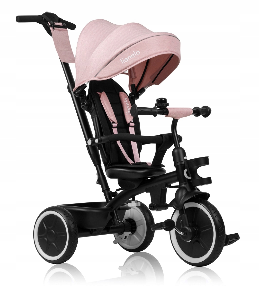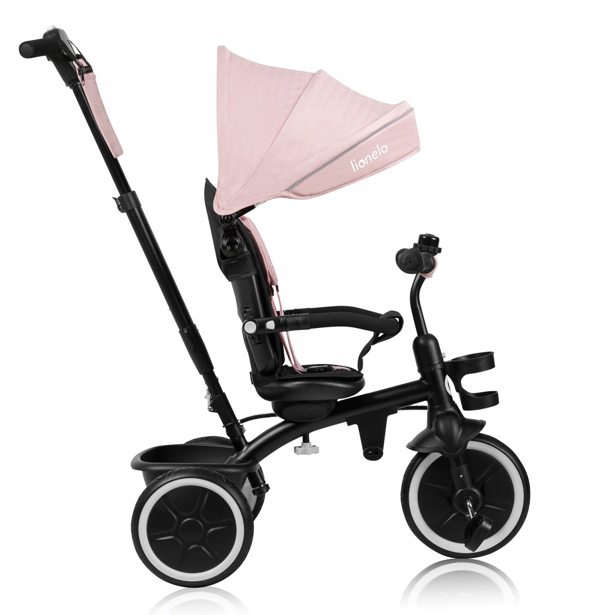 LIONELO BERRY to wielofunkcyjny produkt łączący rowerek spacerowy z jeździkiem trójkołowym. Bezobsługowe i nieprzebijalne koła wykonane z gumy PU poradzą sobie zarówno na prostej drodze, jak i nierównościach. Natomiast obrotowe siedzisko 360° pozwala na dostosowanie ustawień do preferencji malucha. Z myślą o najmłodszych dzieciach zastosowano system przepięcia pedałów, dzięki czemu mogą pełnić funkcję podnóżka. Regulowana wysokość uchwytu dla rodzica pozwala na dopasowanie ustawień do wzrostu opiekuna. W trosce o wygodę podczas codziennego użytkowania, rowerek posiada tak zwane wolne koło, które pozwala dziecku pedałować bez wpływu na faktyczne tempo oraz kierunek jazdy – system sterowania jest umieszczony w uchwycie dla rodzica. Cała konstrukcja montowana jest na klik, dzięki czemu nie wymaga stosowania dodatkowych narzędzi.