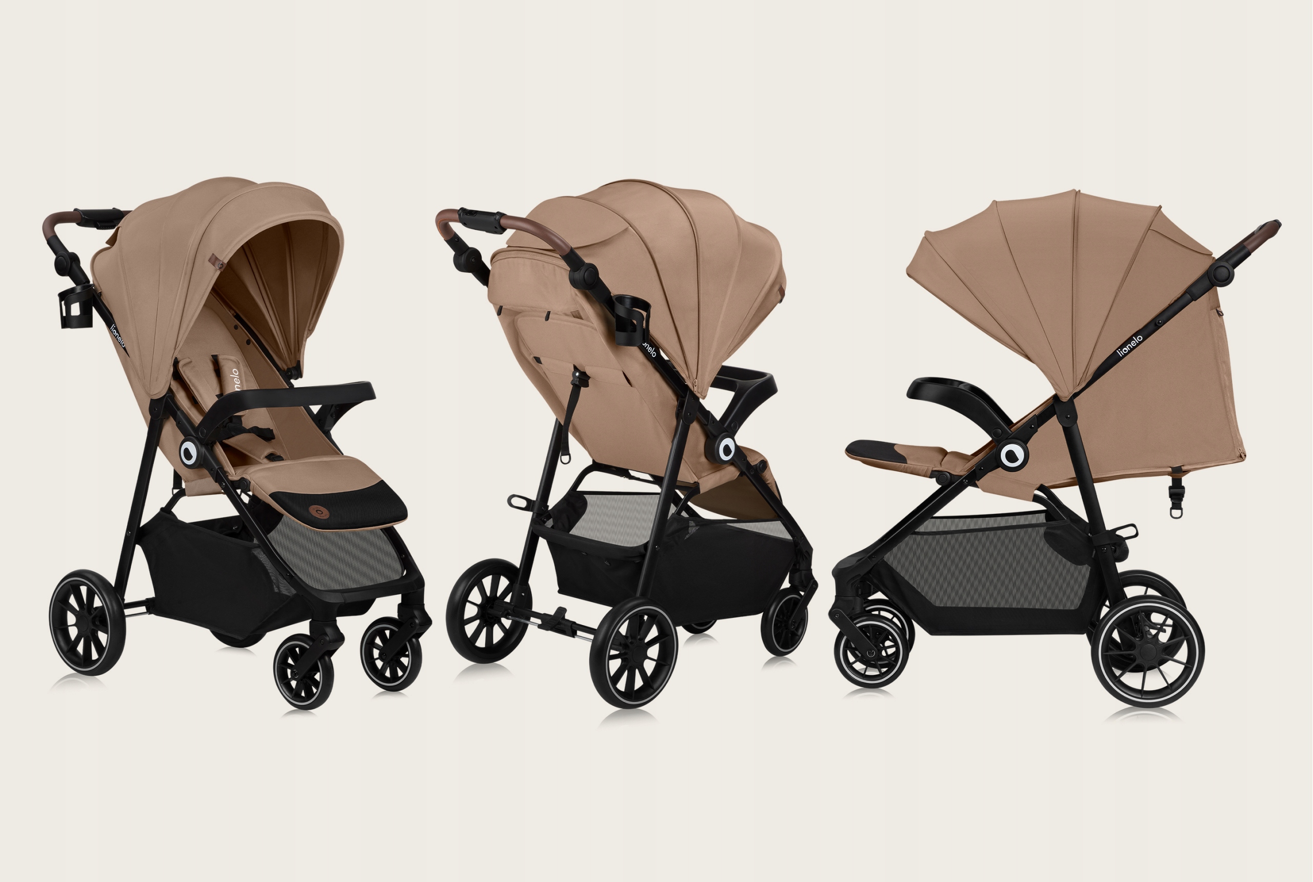 LIONELO Wózek spacerowy budka XXL lekki składany do 22kg Emma One Beige