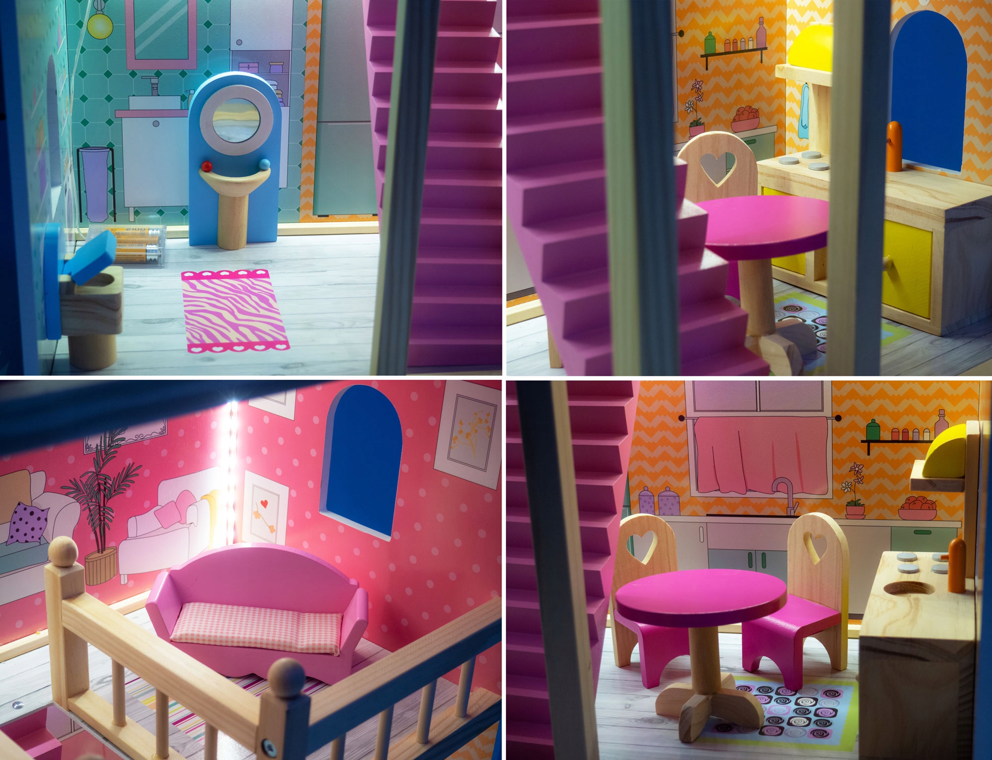 Gigantyczny, drewniany domek dla lalek z meblami i oświetleniem LED!
