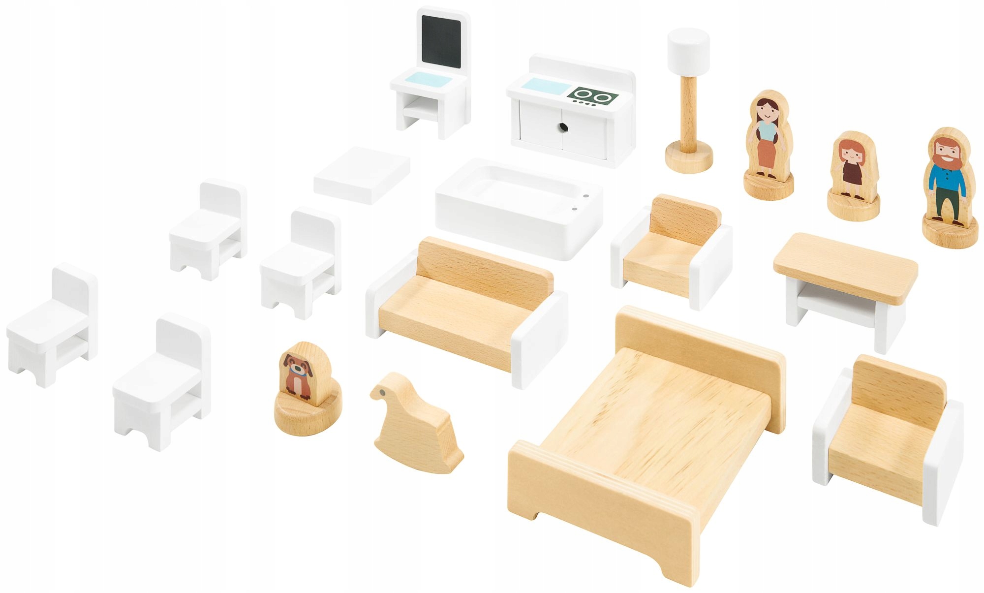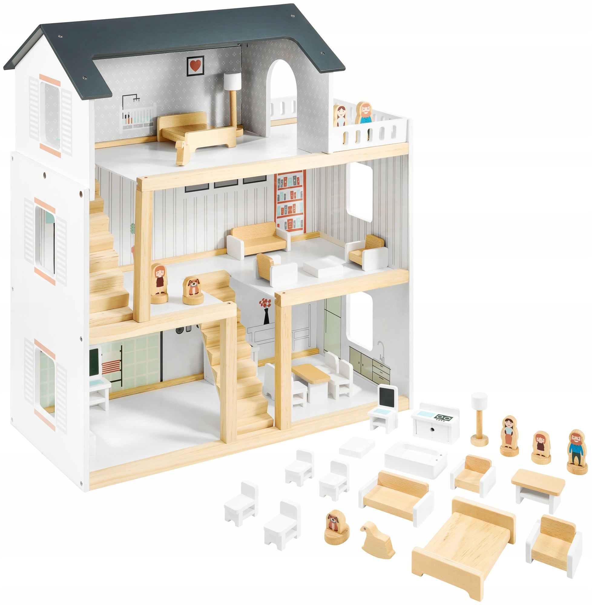 MamaBrum Pastelowy domek dla lalek drewniany Mebelki 3 Poziomy CA1204