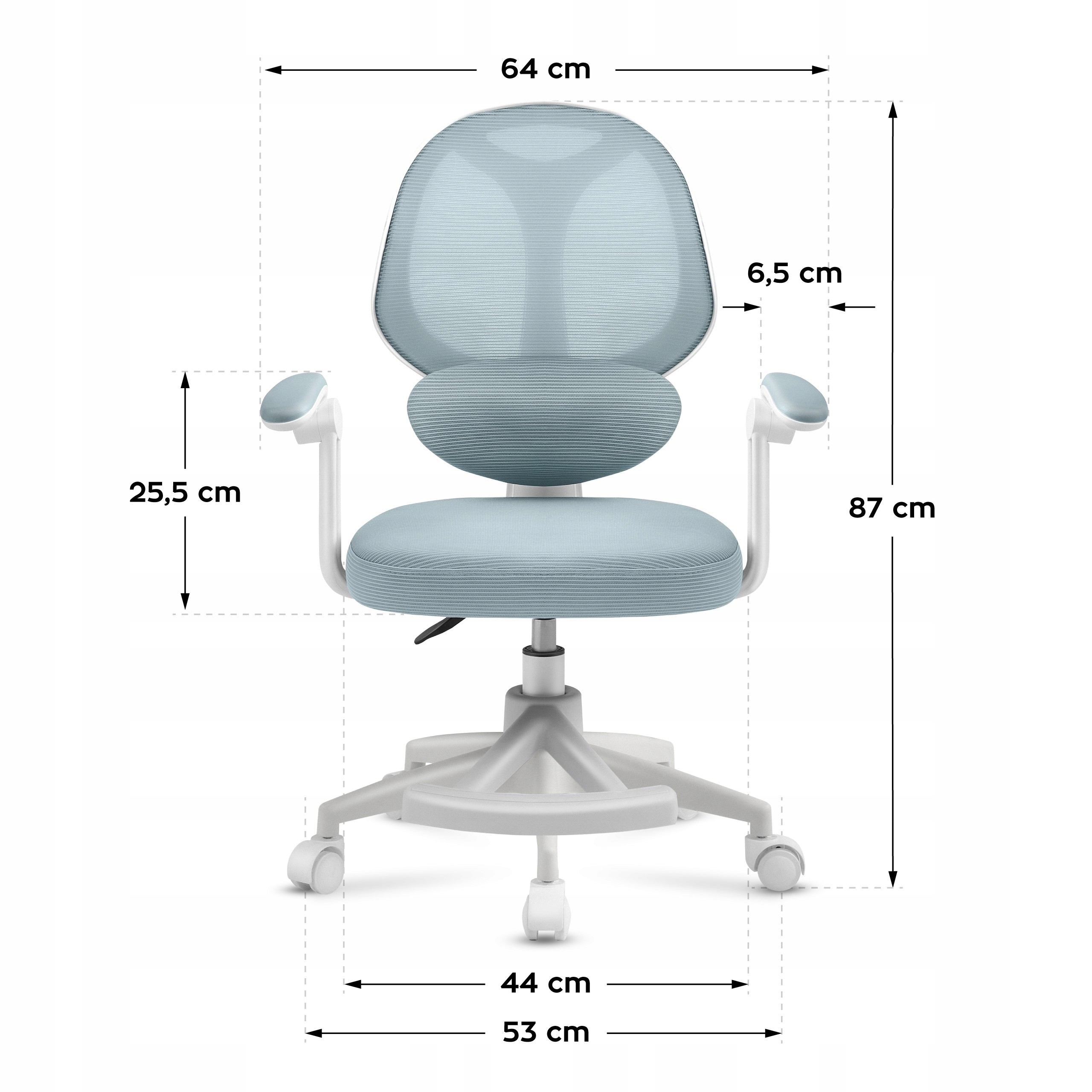 - Fotel jest odpowiedni dla dzieci o wzroście od 80 cm do 150 cm . Dzięki regulowanej wysokości w zakresie 10 cm krzesło można idealnie dopasować do wzrostu dziecka , zapewniając mu wygodną i zdrową pozycję siedzącą.