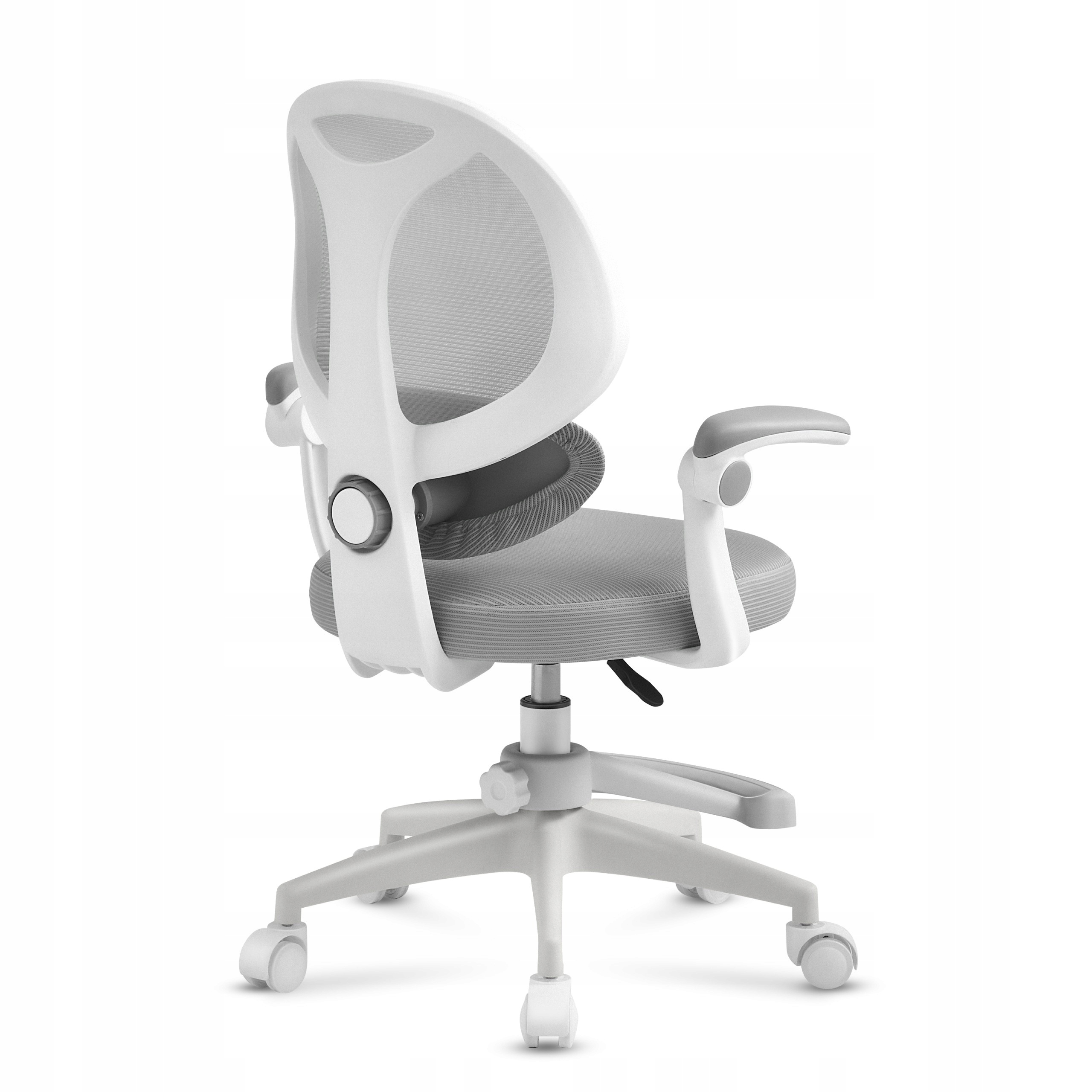 Prawidłowa postawa to klucz do zdrowego rozwoju dziecka, dlatego krzesło obrotowe wyposażono w regulowaną w poziomie podporę lędźwiową. Dzięki temu można precyzyjnie dostosować oparcie do naturalnych krzywizn kręgosłupa dziecka , co minimalizuje ryzyko bólu pleców i wspiera zdrowy rozwój.