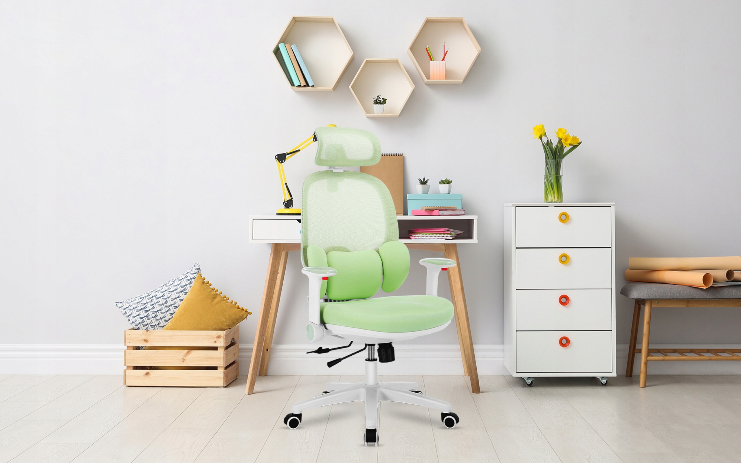 Ergonomiczny zagłówek 2D można dowolnie regulować w pionie i poziomie, aby zapewnić dziecku optymalne podparcie szyi i głowy. To szczególnie ważne podczas czytania, nauki czy korzystania z komputera, ponieważ zmniejsza napięcie karku i zapobiega bólom szyi.