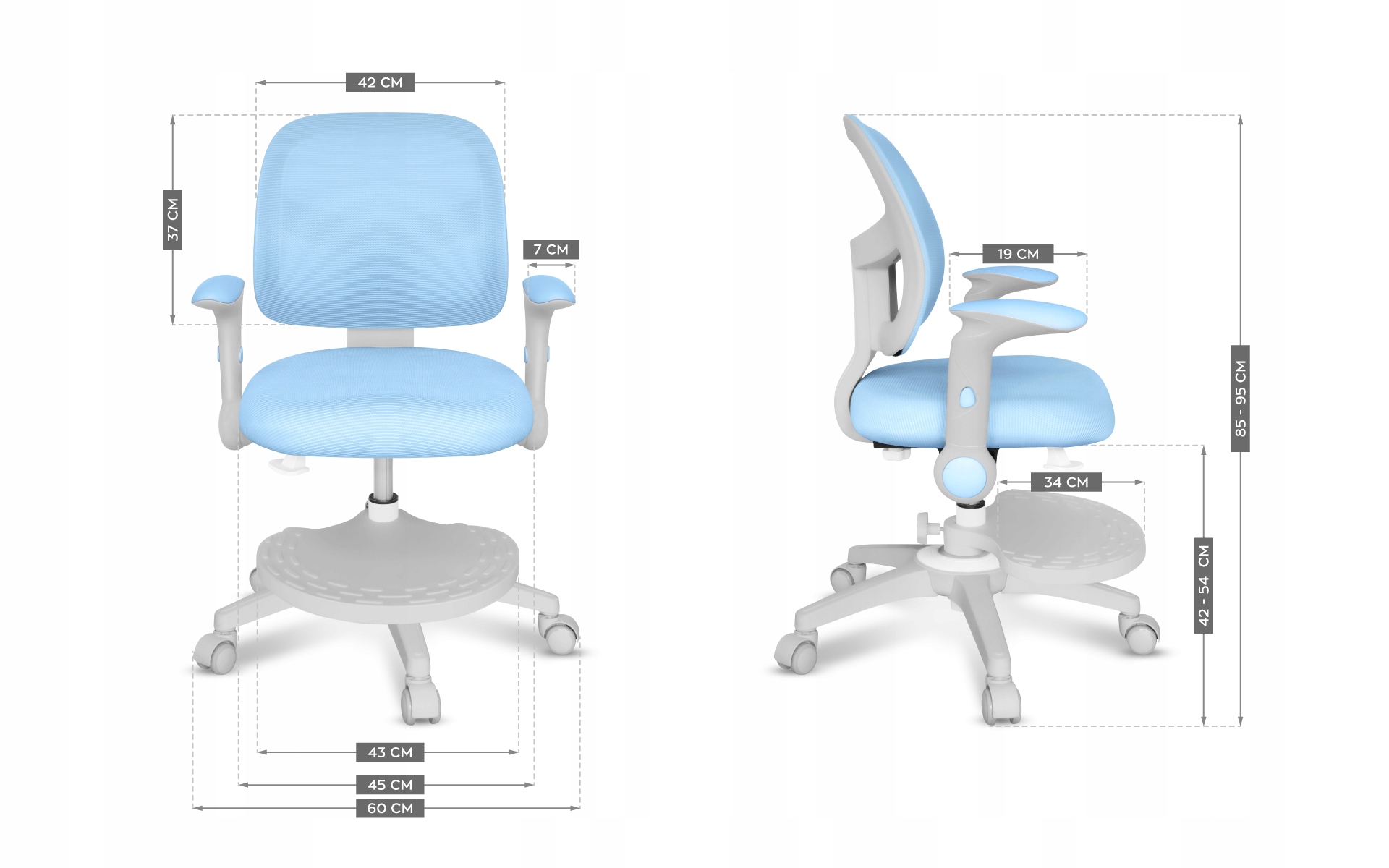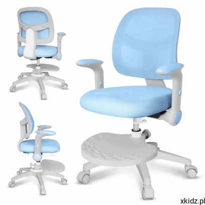 Podnóżek ułatwia przyjęcie ergonomicznej pozycji podczas siedzenia i zapobiega męczeniu się nóg. Regulacja góra – dół umożliwia dopasowanie krzesła obrotowego do wzrostu, gwarantując dziecku stabilne podparcie.