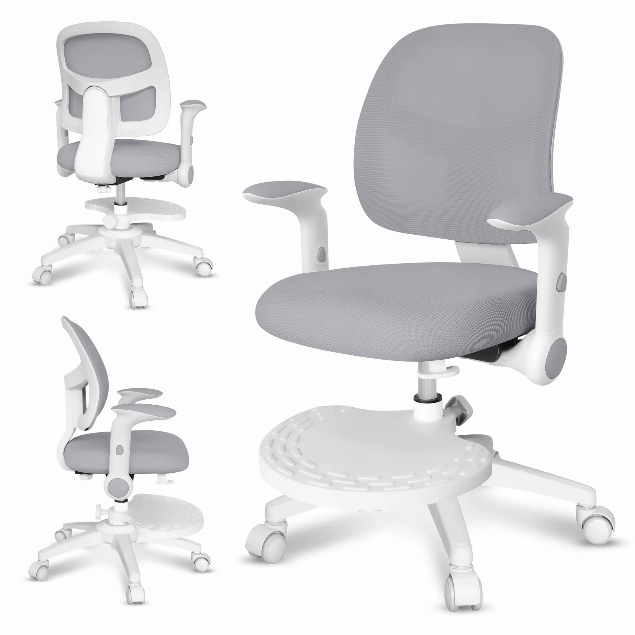 Podnóżek ułatwia przyjęcie ergonomicznej pozycji podczas siedzenia i zapobiega męczeniu się nóg. Regulacja góra – dół umożliwia dopasowanie krzesła obrotowego do wzrostu, gwarantując dziecku stabilne podparcie.
