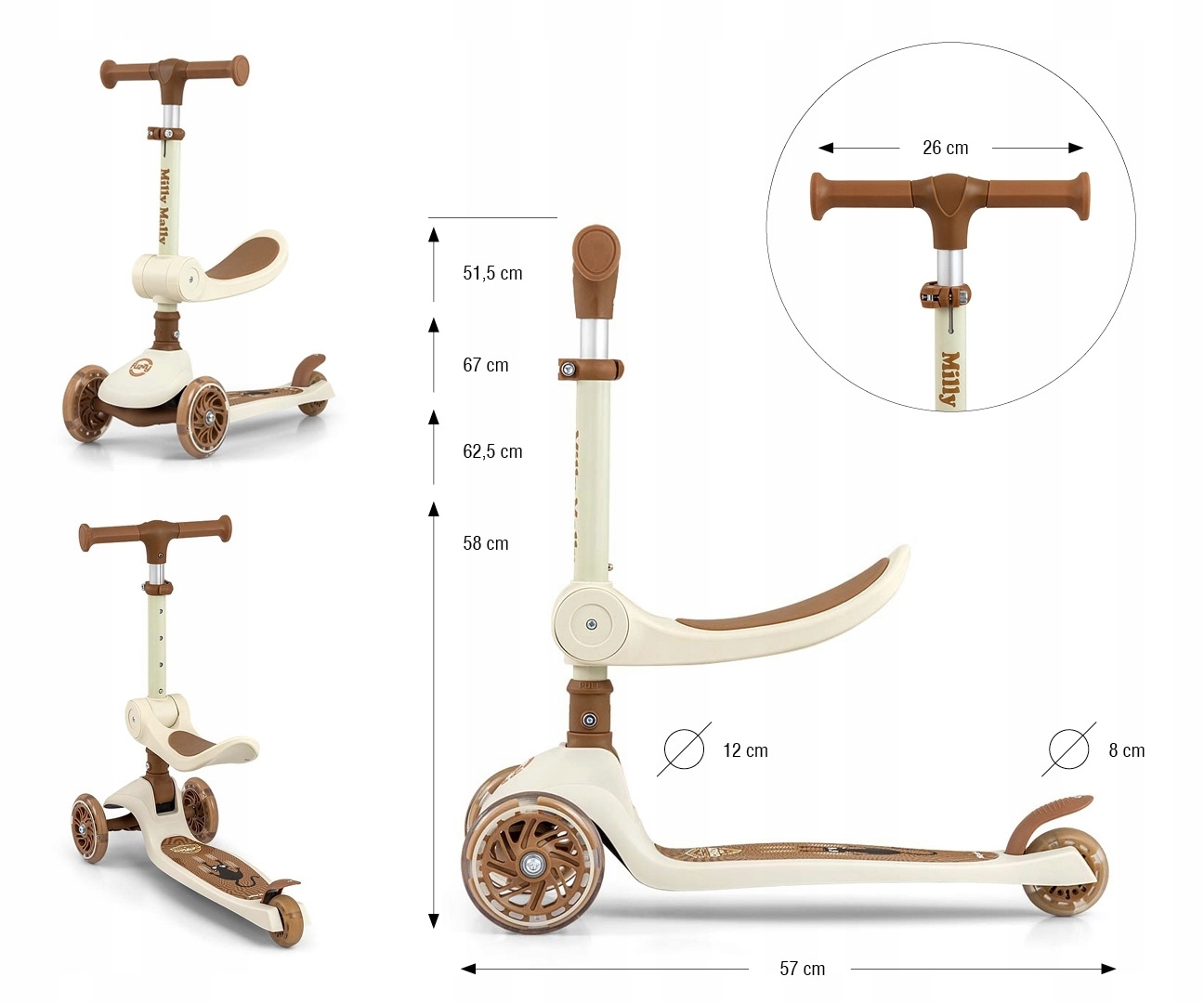 - Wysokość rączki: 58-62,5-67-71,5 cm