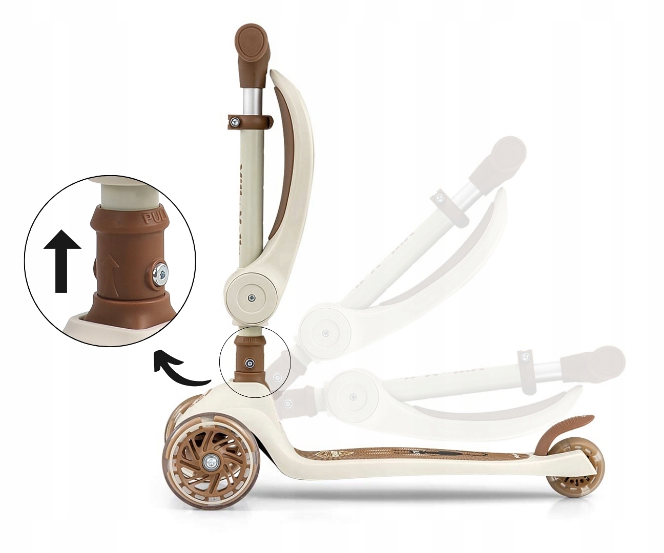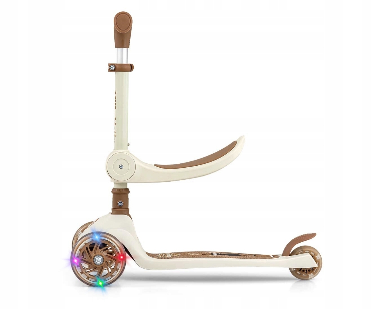 Milly Mally Hulajnoga z siedziskiem jeździk LED Scooter Fuzzy beige 18M+