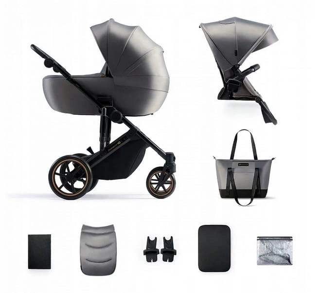 Kinderkraft Wózek wielofunkcyjny 2w1 + akcesoria + adaptery PRIME 2 szary
