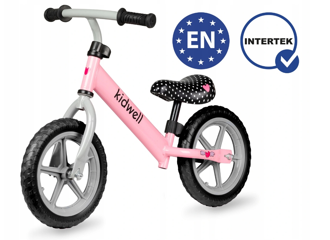 - Rowerek biegowy Kidwell REBEL spełnia europejskie normy bezpieczeństwa EN 71,został zaprojektowany, wyprodukowany i certyfikowany zgodnie z wymogami Unii Europejskiej